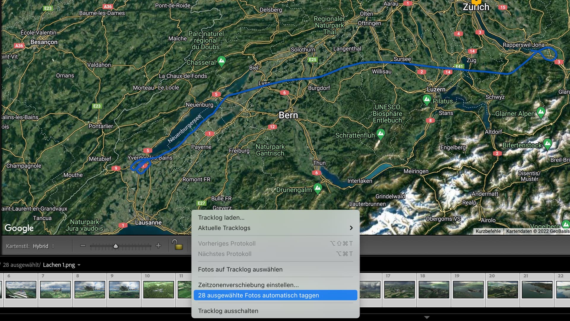 Now we could spin this further and - with the help of the appropriate tool - export the photos in KML format, in order to show then “geolocated”, e.g. in Google Earth. Even in combination with the actual flight path which Sky Dolly can directly export as KML. You get the idea
