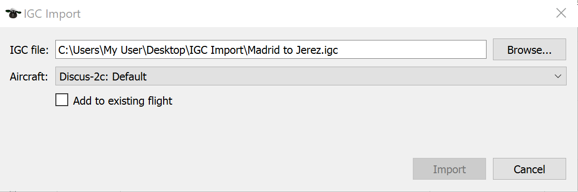 The glider also typically “wildly turns on the ground” just before take-off, due to GPS “signal noise” (this might be amended in a future update of the IGC importer). Another known issue is that the initial altitude rarely matches with the terrain height in MSFS, so the glider starts either way below or above the terrain. This might be amended with a future altitude offset in Sky Dolly.