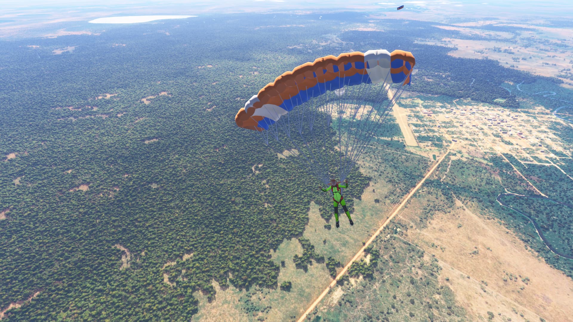 I flew a few skydiving missions and was never able to see those parachutists landing after jumping. The first time, i was very disappointed about that and was complaining, that Asobo should have shown those people with parachutes flying down.