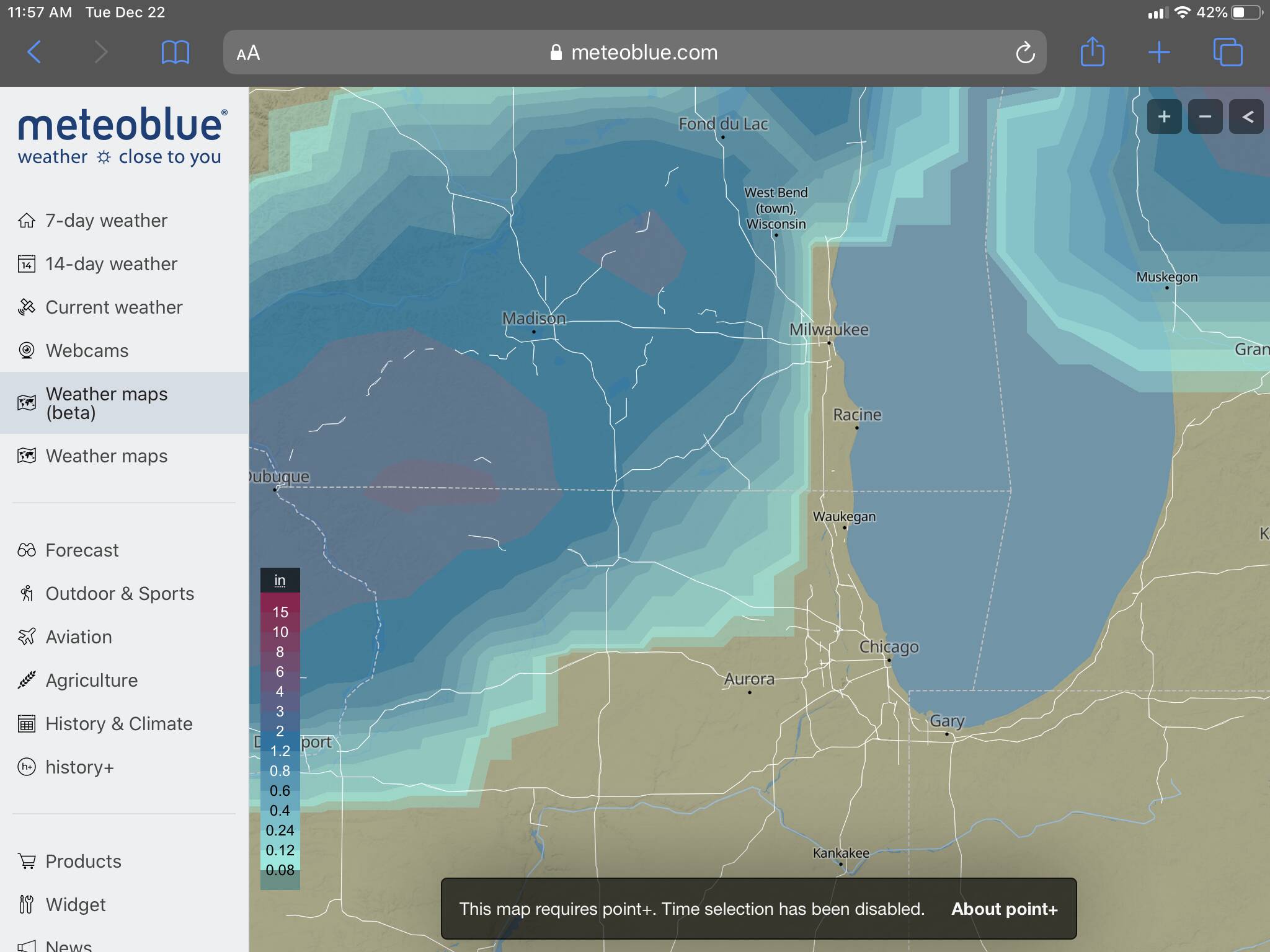 I’m glad to see that the new “snow already on the ground” feature does seem to be working in at least some locations, but it should work anywhere that the MeteoBlue accumulated snow database shows snow has fallen. Hopefully this is something that can be adjusted server-side.