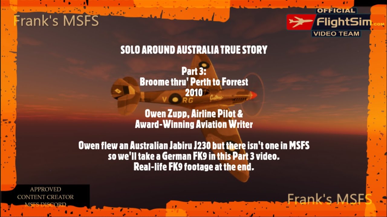 Note: Owen flew an Australian Jabiru J230 but there isn’t one in MSFS yet, so we’ll use a sort-of-similar German FK9 Mk IV in this Part 3 video, with real-live footage of the FK9 at the end of the video.