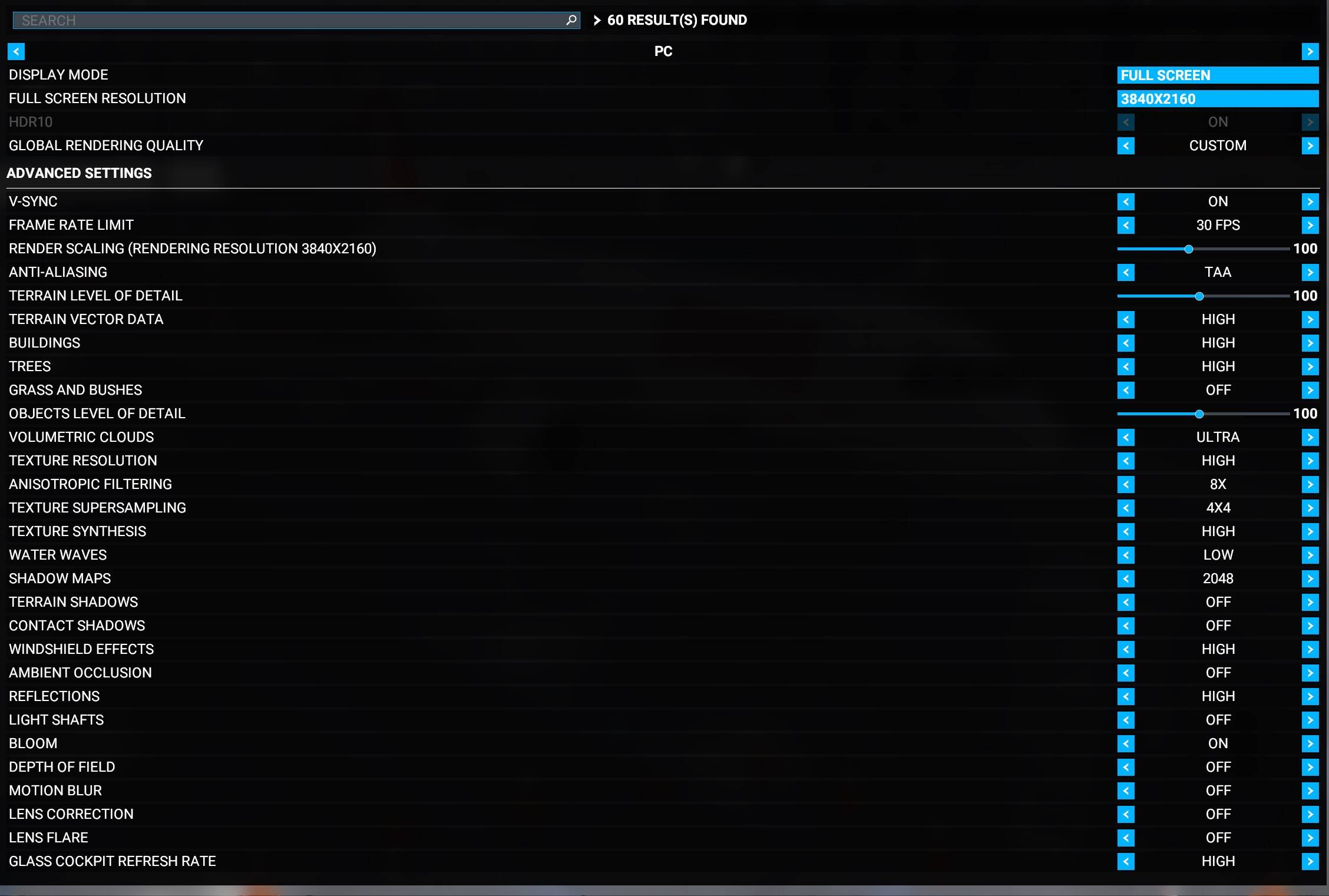 Sure, I can do that. It will take a few days because…Life. But expect it. What I did was select judiciously from every “tips and tricks” posting on the internet, in order to understand what settings actually did and how they affected the visual quality and performance of the sim. Strangely, the best tips came from Youtube and the videos’ comments. It is also true that I found that the choice of aircraft made a big difference (DUH). Right now the H135 is the most costly plane in my stable. It is complex. One other thing, I use AddOn Linker (the best addon in the ecosystem) to only load the symlinks of the areas and devices that I will use that session. That seems to keep the system burden down somewhat. Anyway, I’ll do as you wish. But, your system will be different from mine so, as usual ,YMMV. So, my settings may not be a panacea for everyone (if that word choice is not redundant