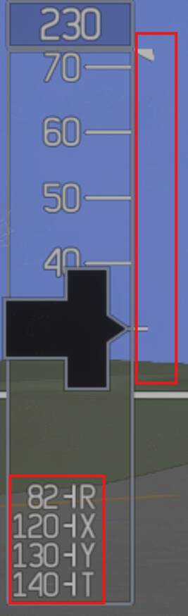 They will then show up on your PFD here, plus as markers next to those speeds on the speed tape.