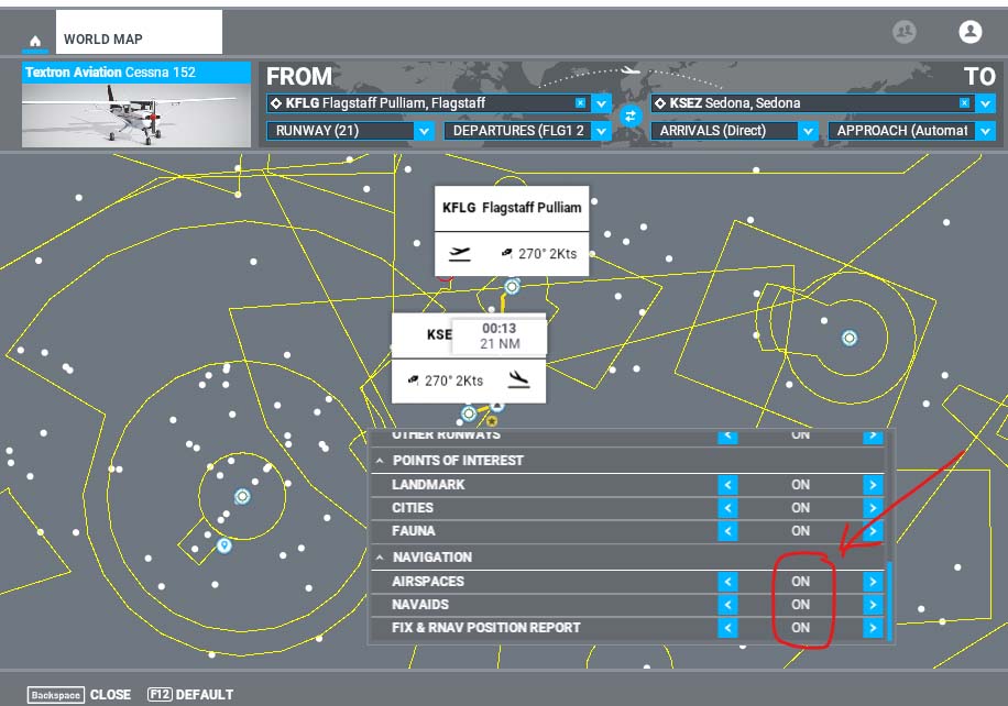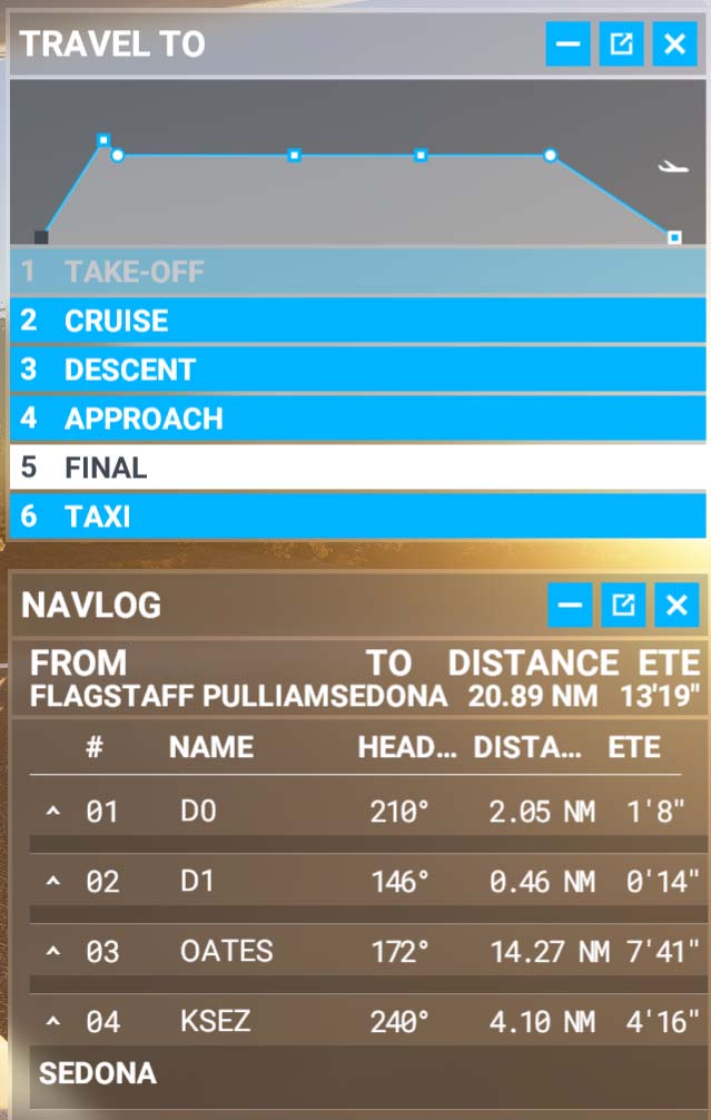 I had a bit of an epiphany for a newbie in completing tutorial #8, flying solo on my own from Flagstaff to Sedona, Arizona. That’s the reverse flight of what one has to accomplish in tutorial #7, flying from Sedona to Flagstaff under the watchful eye of the AI instructor but with more guidance.