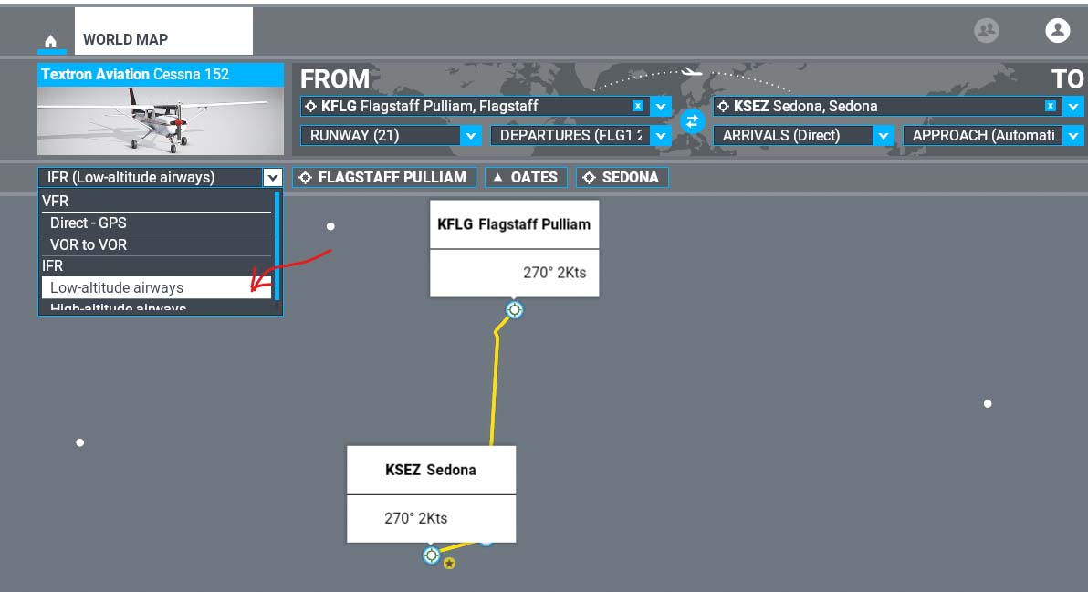 Creating Low-Altitude Airways IFR Flight Plan in MSFS World Map Just For Practice