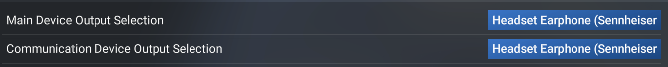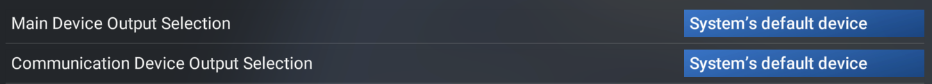Changes made to either Main Device Output Selection and Communication Output Selection do not persist after exiting and restarting the game. Upon starting the game they are always back to “System’s Default device”