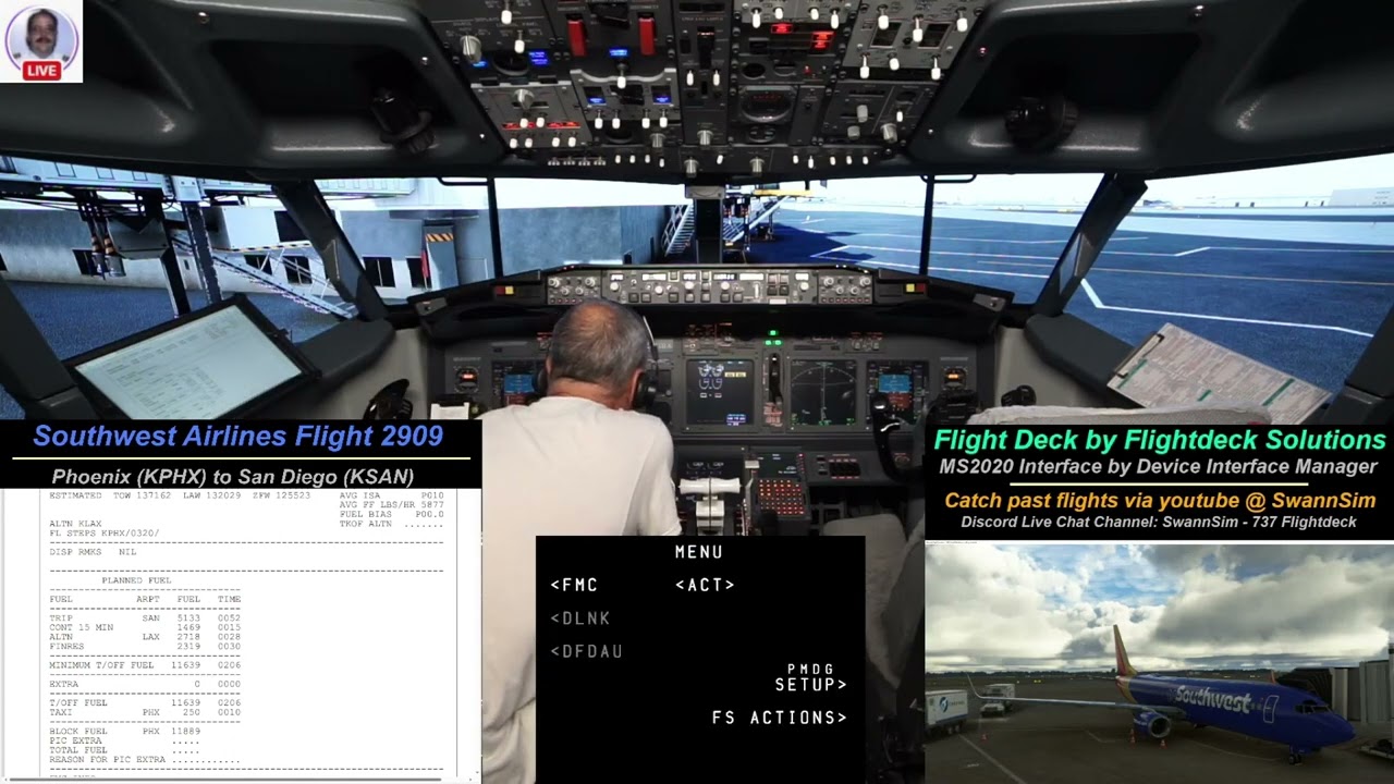 Today’s flight is a Southwest flight (2909) with nonstop service from Phoenix (KPHX) to San Diego (KSAN).