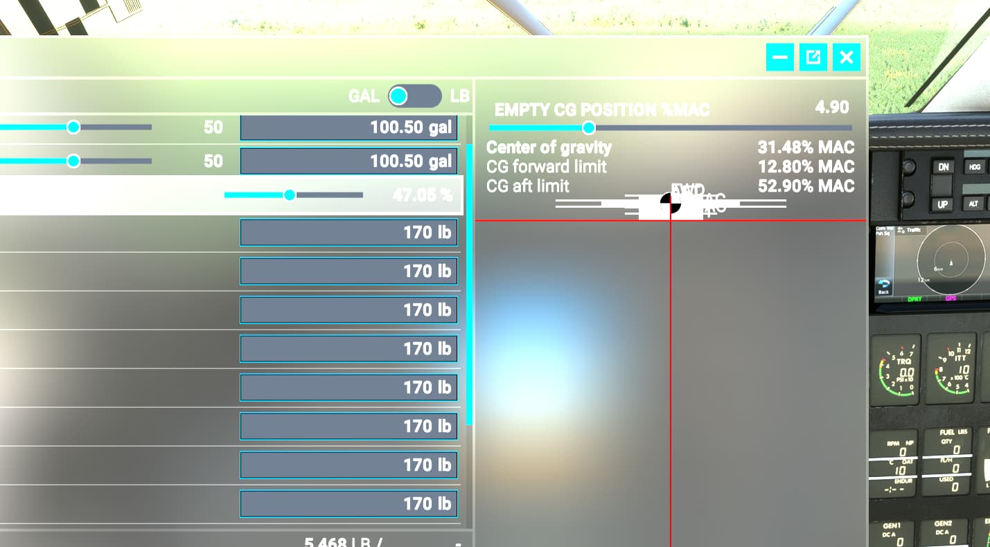 I am not sure how you got it to look like that on your computer, but you might try switching in/out of windowed mode and hitting the “Reset” button. If that doesn’t work, drag the "EMPTY CG POSITION %MAC slider back and forth and see it that fixes it.