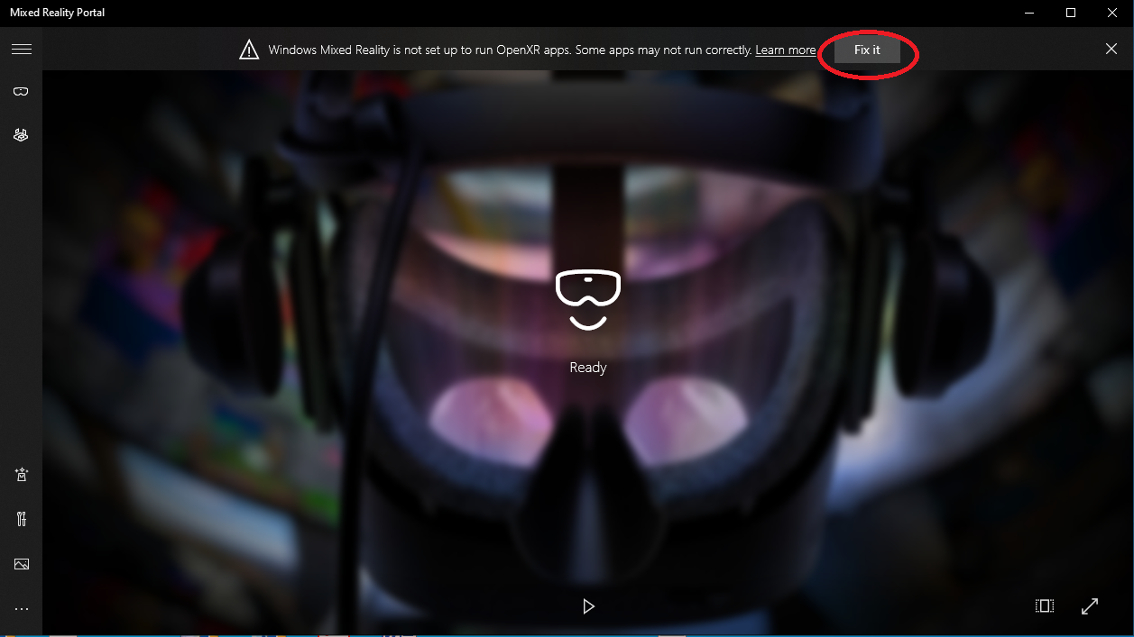 This is what WMR portal looks like when SteamVR is the default app for OpenXR, then you click “fix” to change it back. Are you not seeing this message?