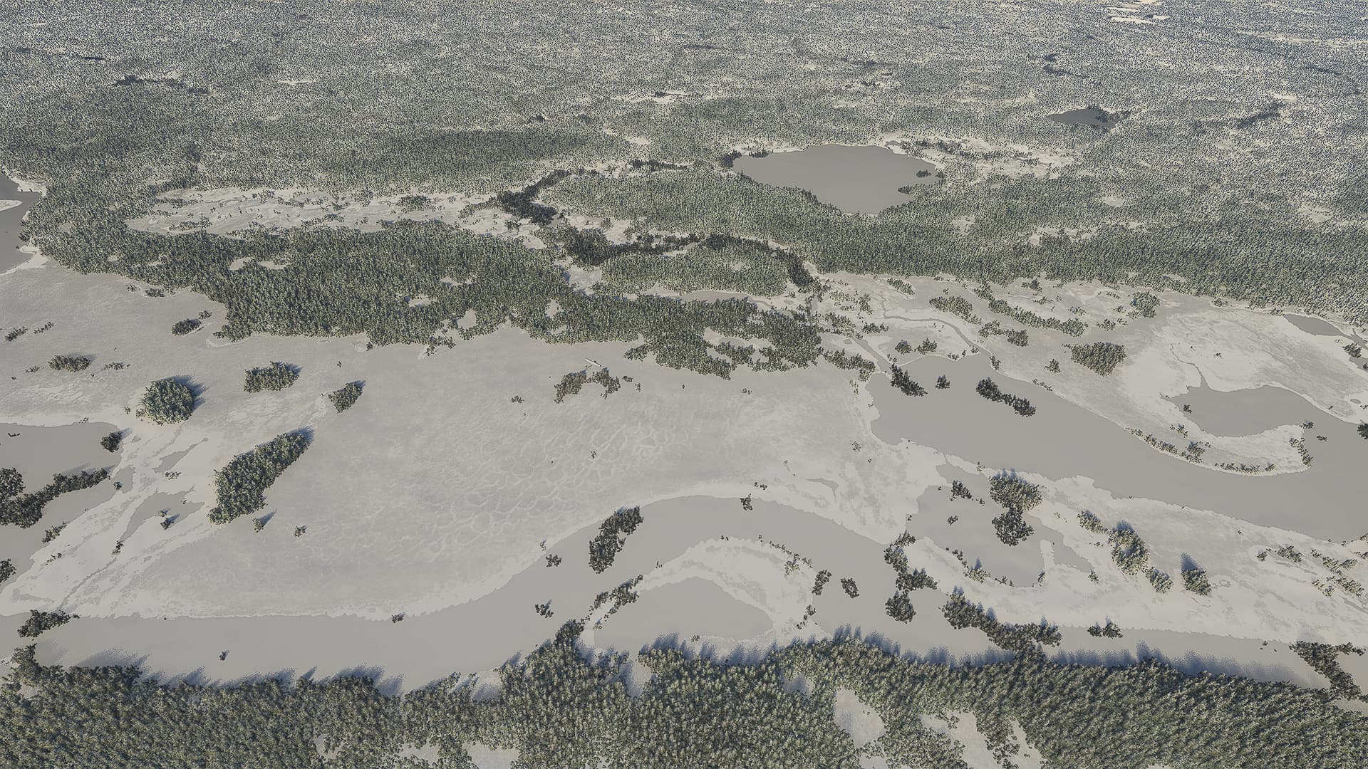 Connecting river between Atikosis Lake (left) and Stupart Lake (right).