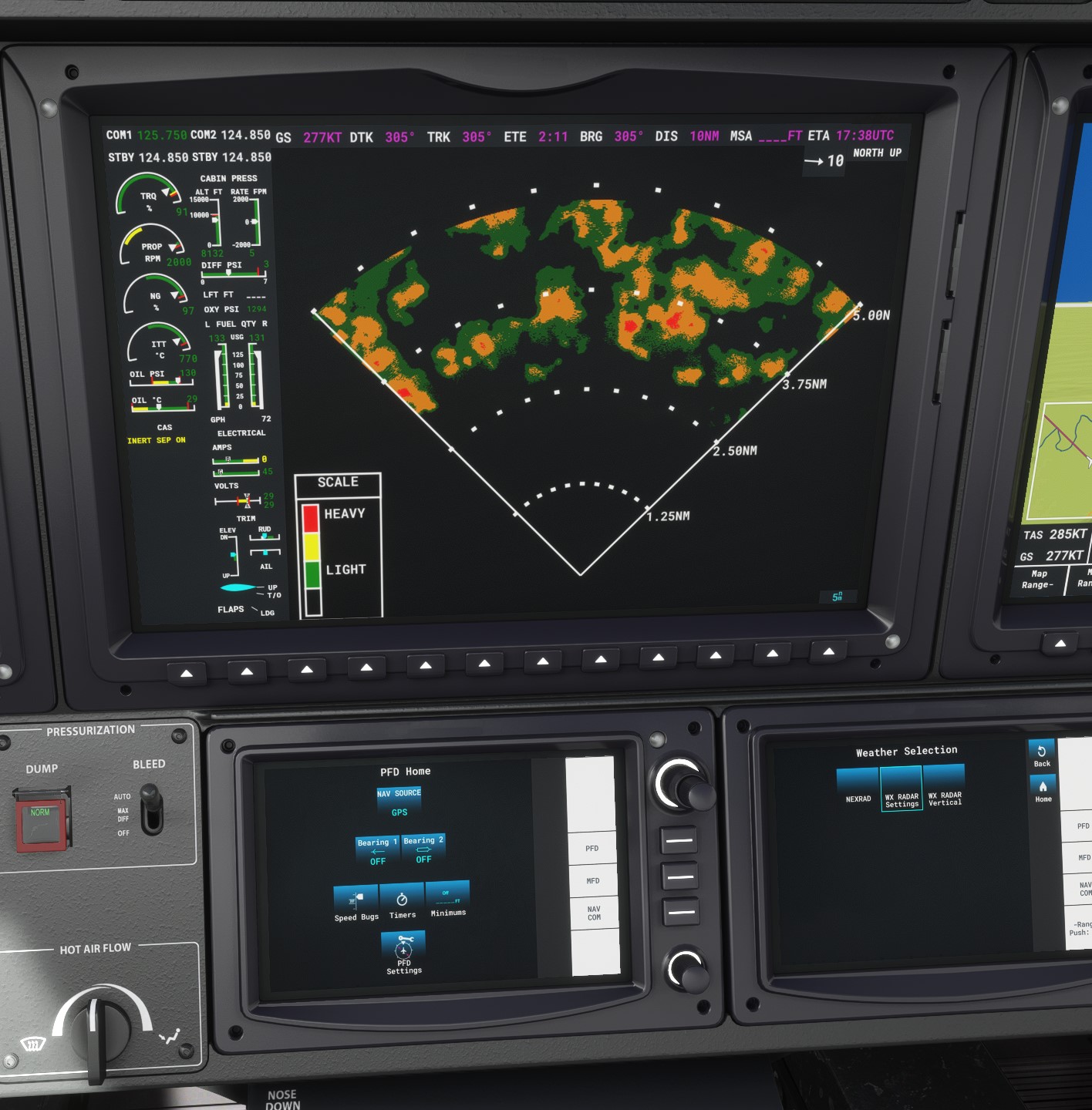 Weather radar set at 150 mile range