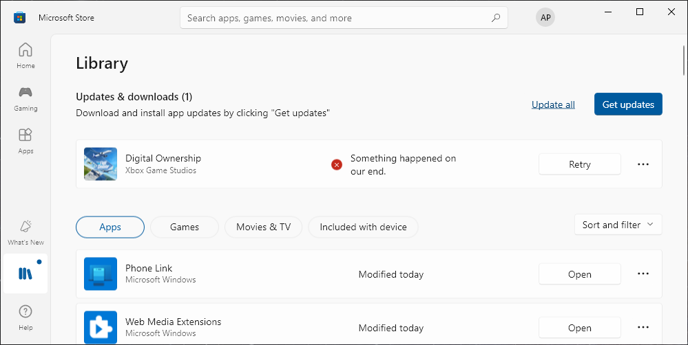 If I click “Retry” it actually does something, but when I reopen the Store I’m back at this again. It’s like it’s not installing/updating properly and I can’t find out why. Is there some .log somewhere? Maybe some path is incorrect.