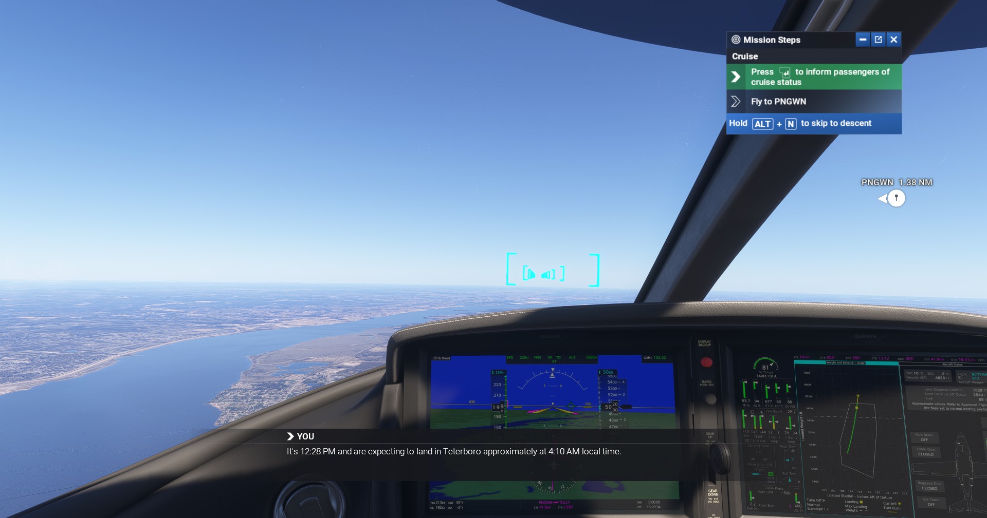 - Ensure you follow the Goal Prompts to keep passengers informed, especially after take-off and at cruise achievement.