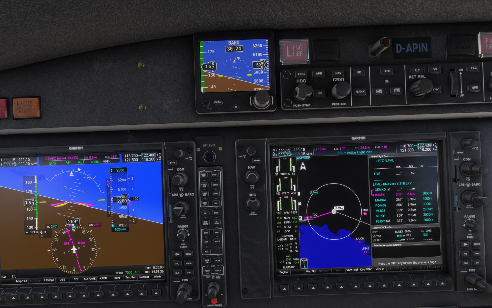 - Observe the TOD and VNAV info showing up on the map and in the Active Flight Plan page on the MFD