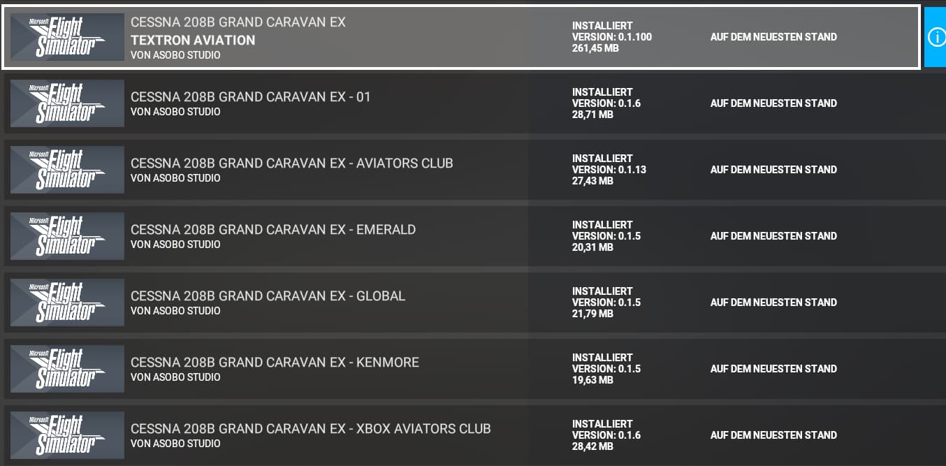 I noticed that the caravan was changed with SU12. Thus, to get a clean install, I also tried to uninstall, cleared caches, installed only the main-package, then the other liveries step-wise, but these ābuttonsā are not clickable.
