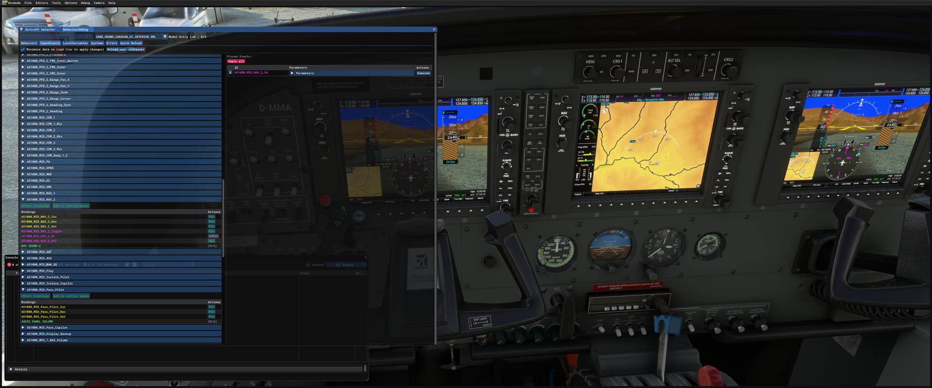Images related to the DA40: I can setup NAV1 with events, no errors