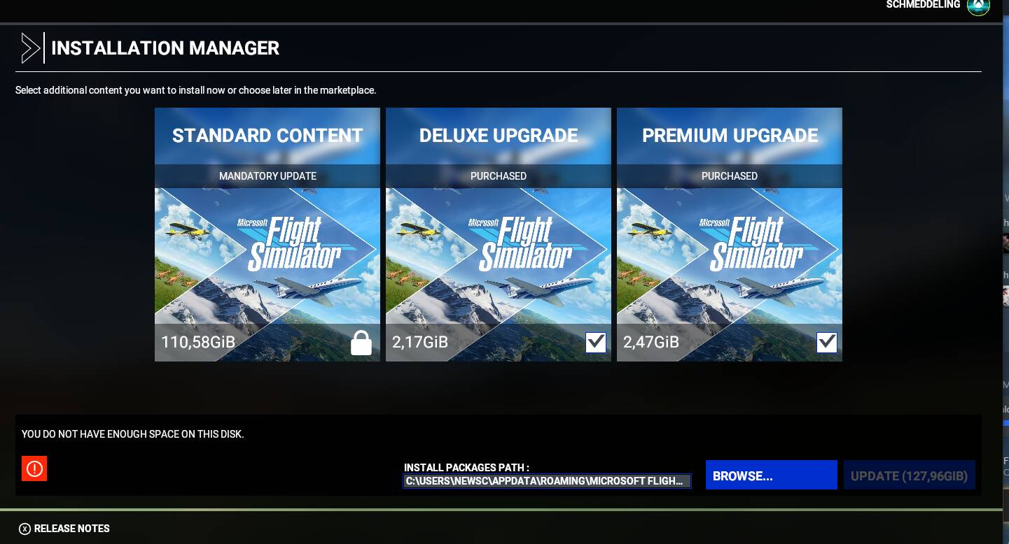 THANK YOU. Had the other msfs folder selected. now its 300kb update. How can this happen… wonder how many people reinstalled cause of this.