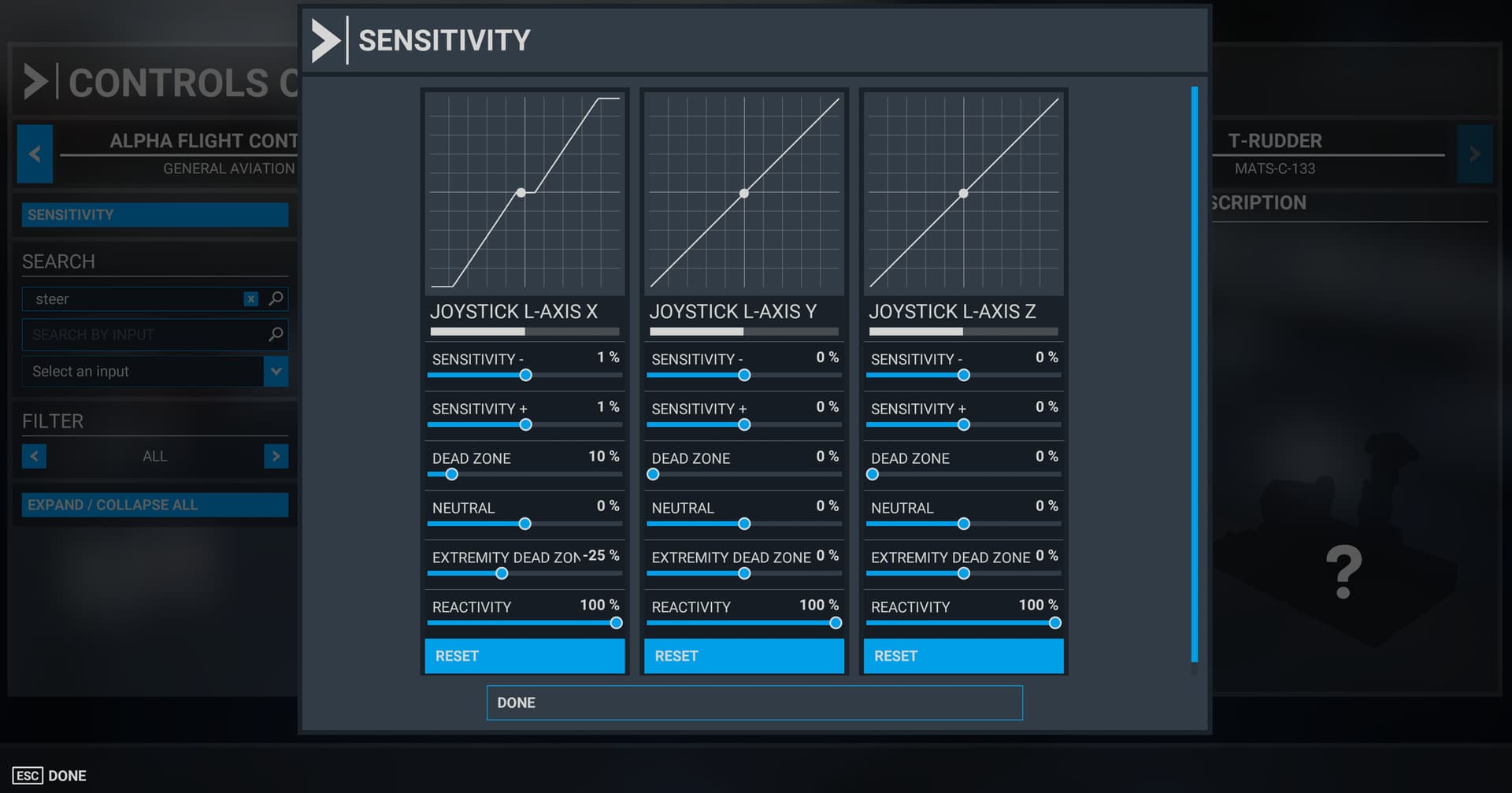 I use rudder pedals which obviously work for nose wheel steering on all other aircraft. For the F-18 I’ve mapped to Set Nose Wheel Steering to Limit, this enables/disables the nose wheel steering (only available below a set speed).