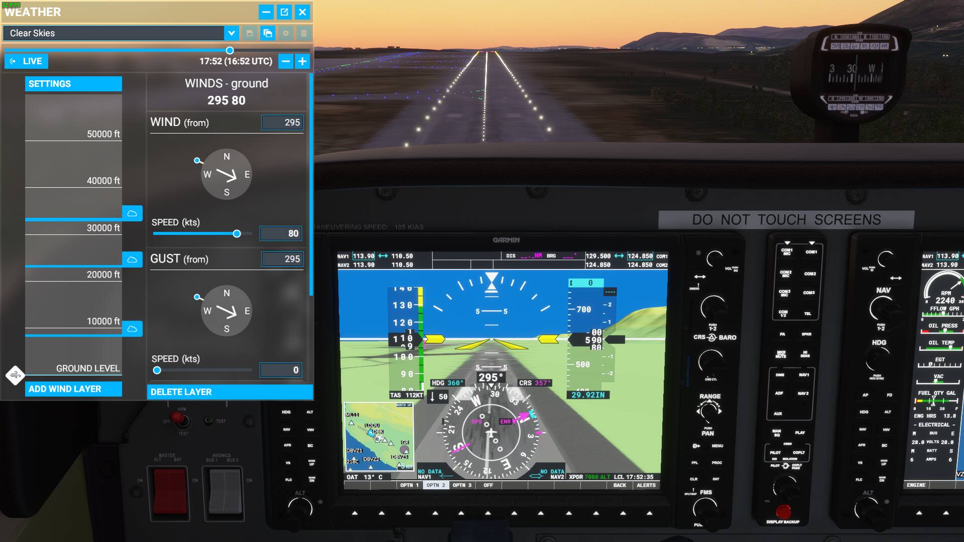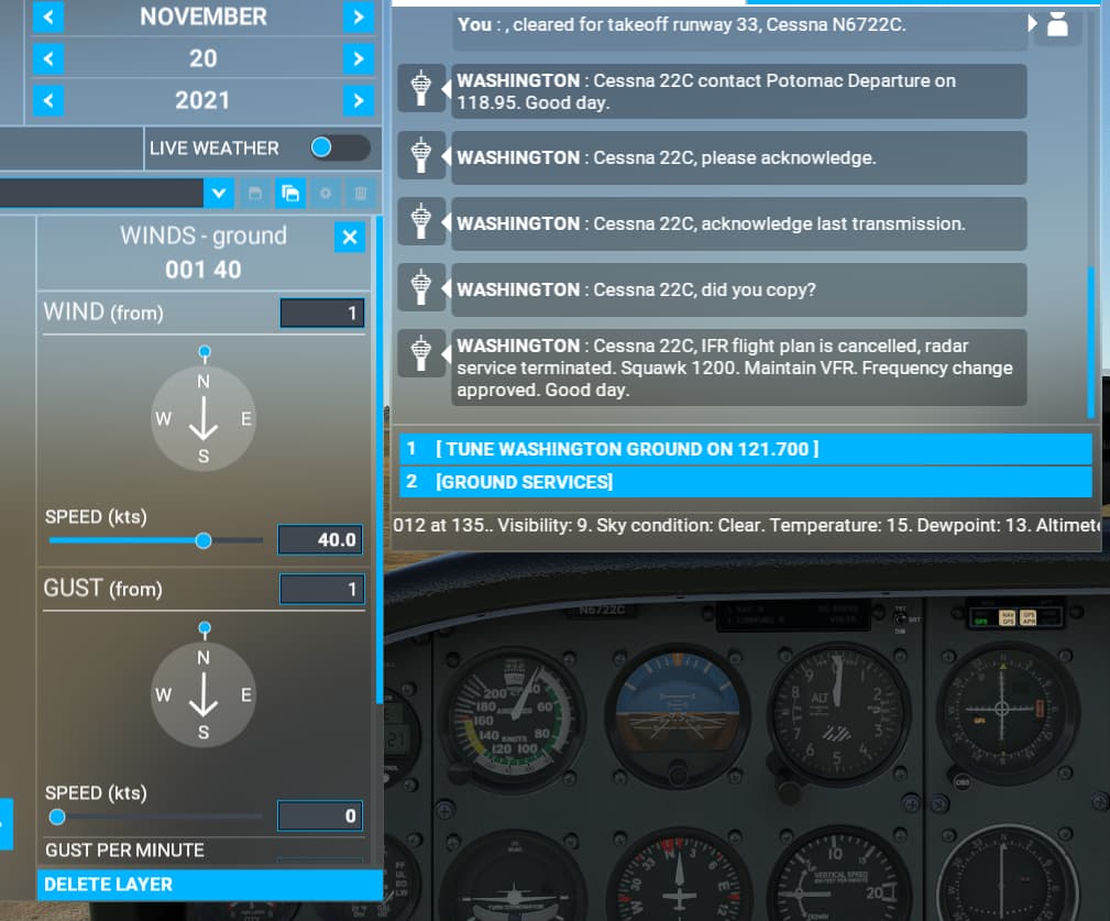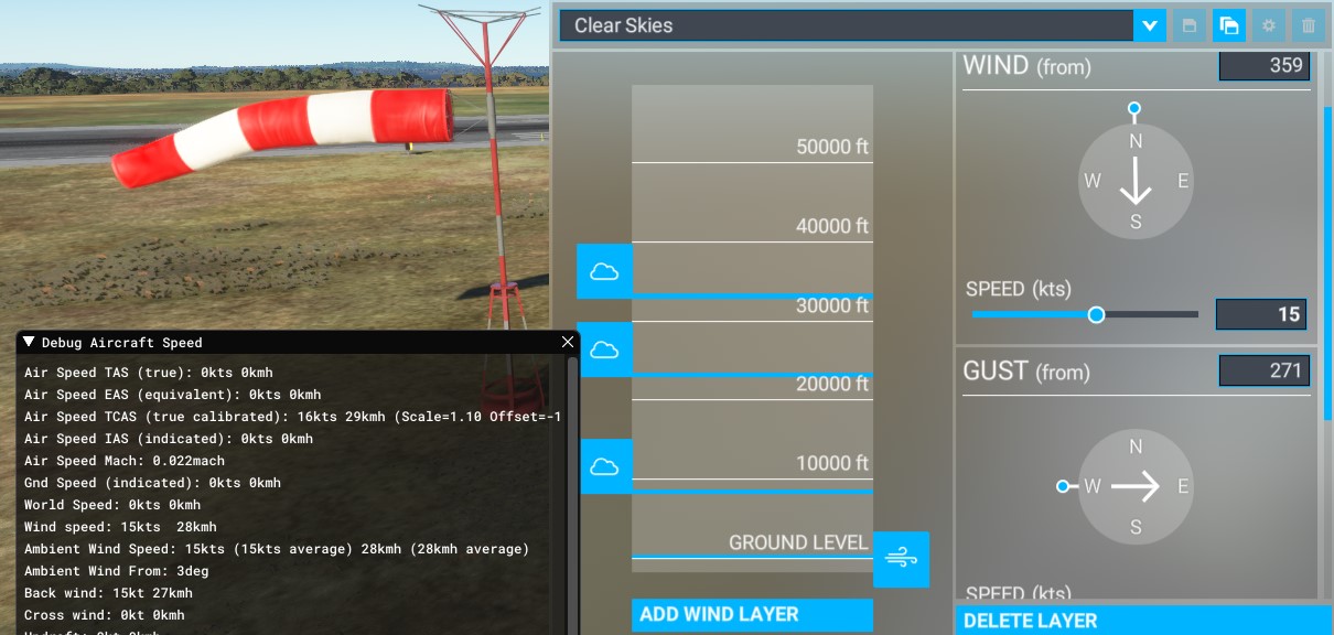 There are a multitude of problems caused by this implementation. First of all, what you are really interested in using a simulator is direct and accurate control over the ground wind, I’m not that interested in what the wind at 1000 ft is doing as a result of the ground wind I’ve entered. If I want to practice a crosswind landing, and I punch in 20 kts crosswind, gusting 30 kts, then I want the wind to be exactly that at the surface and not 10 gusting 15 kts. The weather menu even states WINDS - ground, which is clearly not the case, even though the wind layer is put at ground level the selected wind is really the geostrophic wind and not the ground wind.