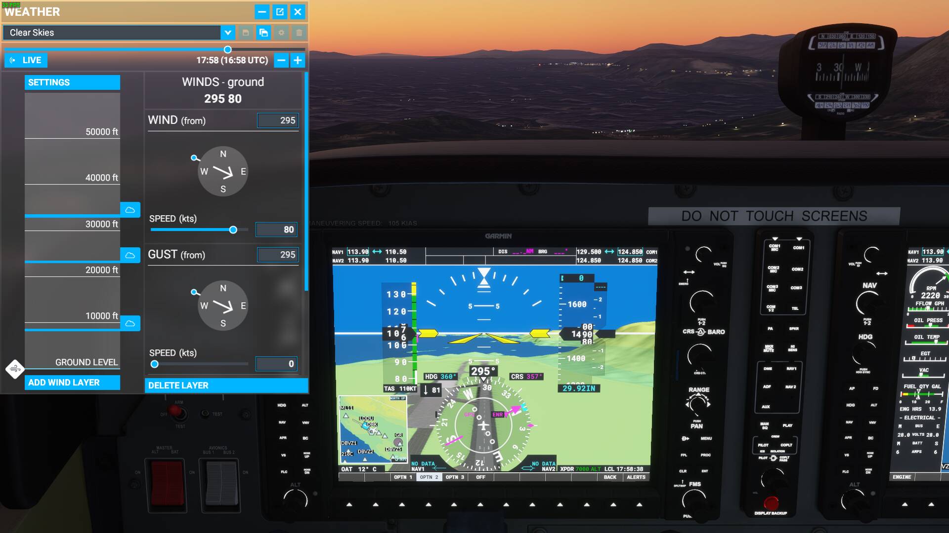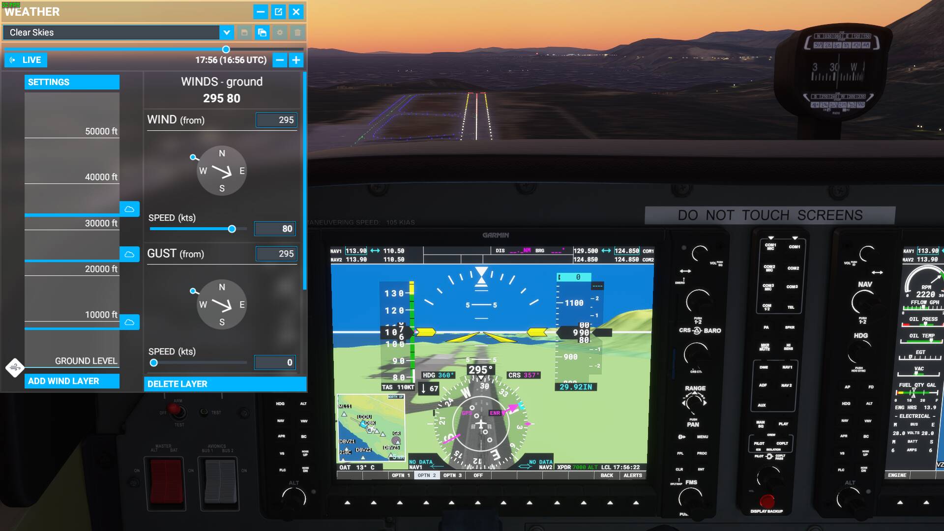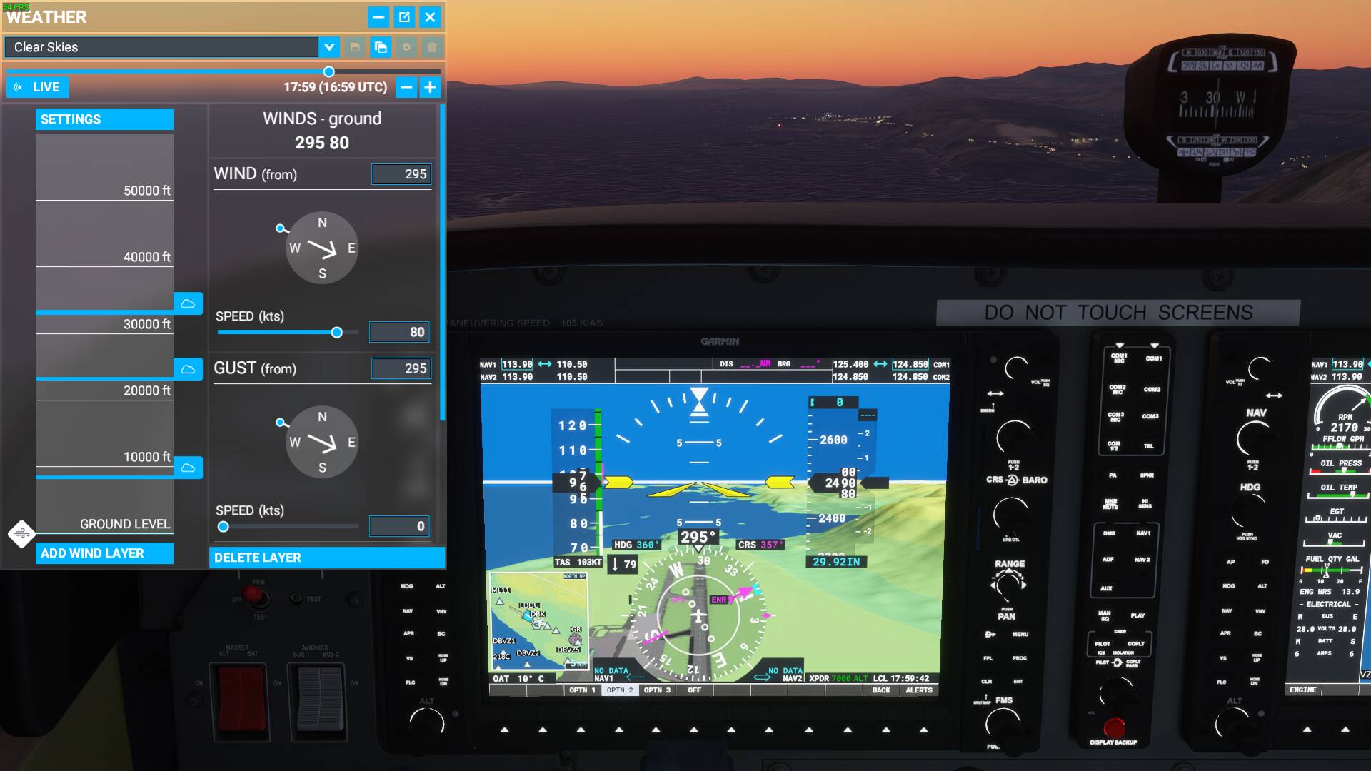 There are a multitude of problems caused by this implementation. First of all, what you are really interested in using a simulator is direct and accurate control over the ground wind, I’m not that interested in what the wind at 1000 ft is doing as a result of the ground wind I’ve entered. If I want to practice a crosswind landing, and I punch in 20 kts crosswind, gusting 30 kts, then I want the wind to be exactly that at the surface and not 10 gusting 15 kts. The weather menu even states WINDS - ground, which is clearly not the case, even though the wind layer is put at ground level the selected wind is really the geostrophic wind and not the ground wind.