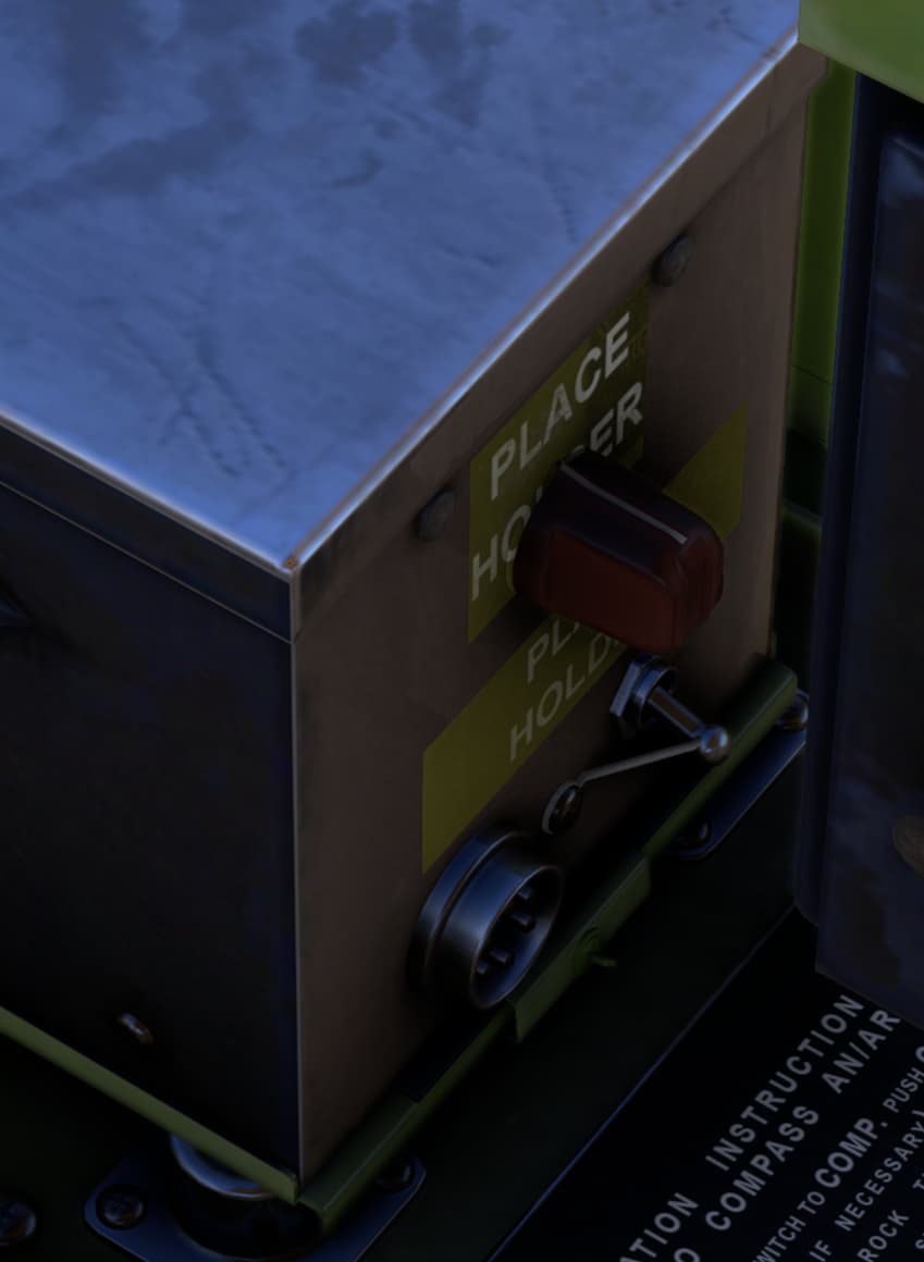 There are two Place Holder labels present on an electronics box on the right-hand side of the cockpit.