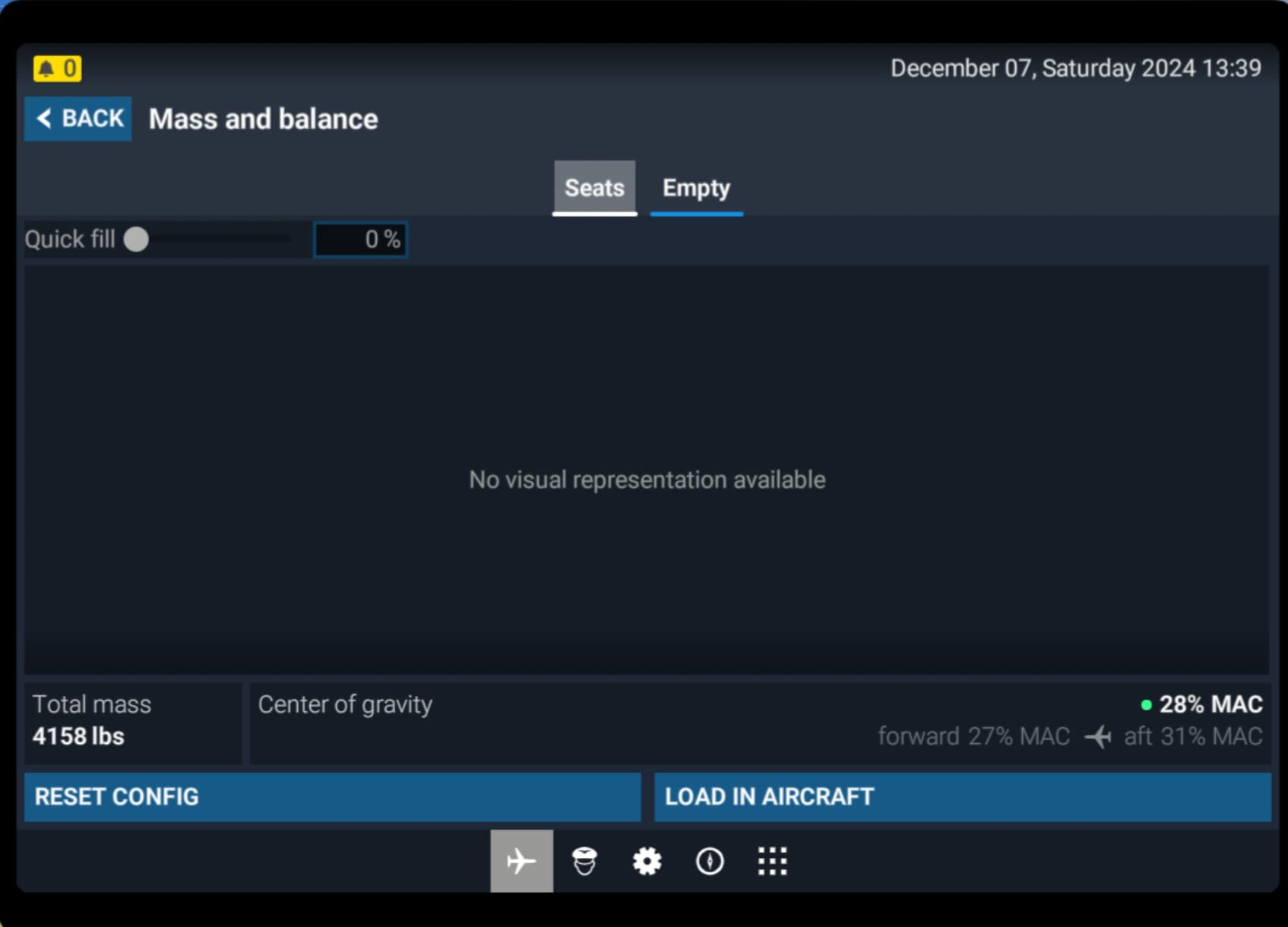 - Note that the seat loading tab in the EFB displays the message: “No visual representation is available” (see pic)