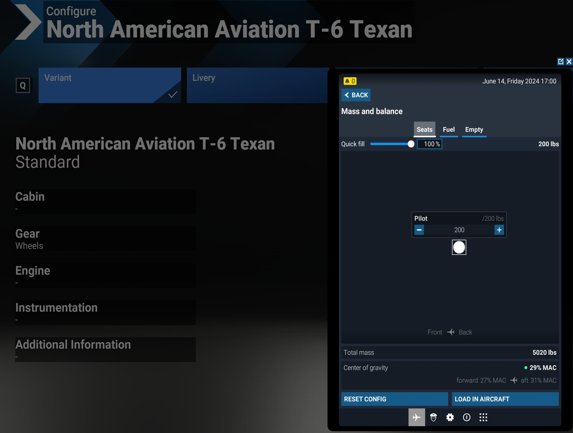 - Choose Free Flight, select the T6 Texan and open the page to configure the aircraft.