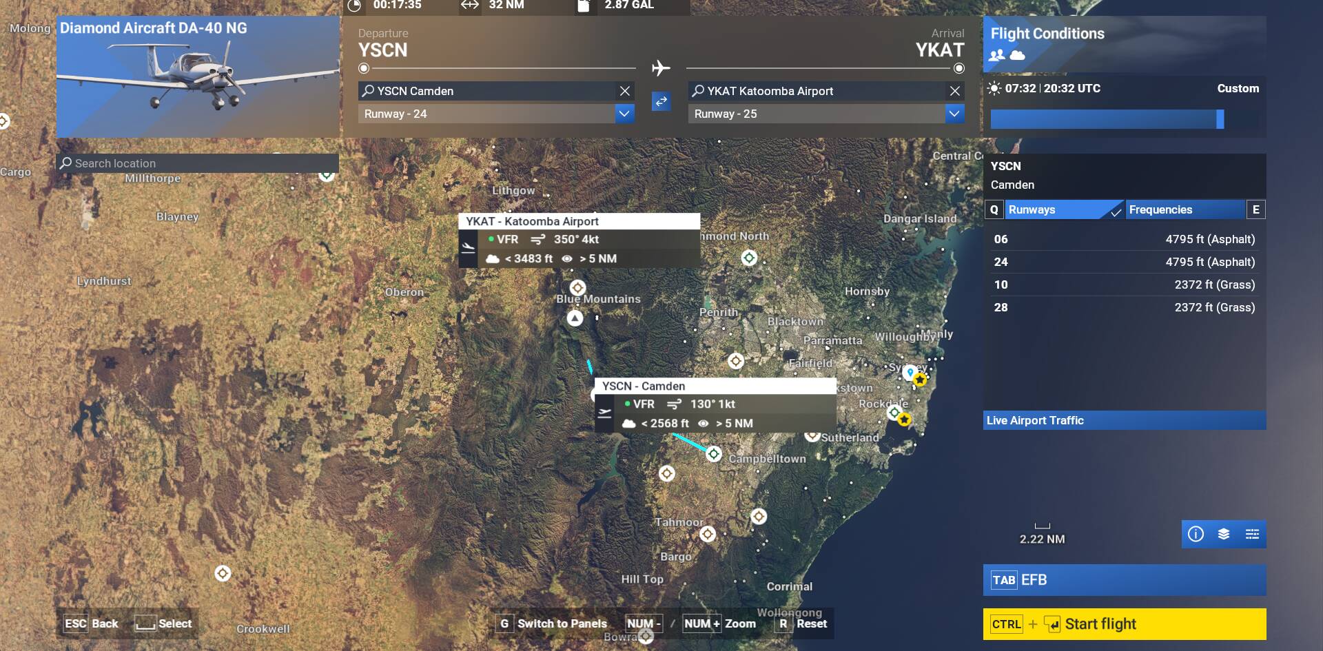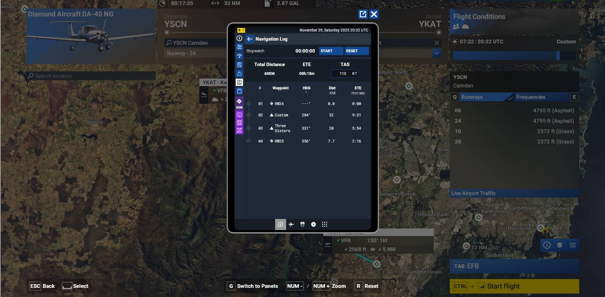Notice now the flight plan only shows the departure and destination airports on the planner. It also shows up in the avioncis of certain aircraft such as the COWS da42
