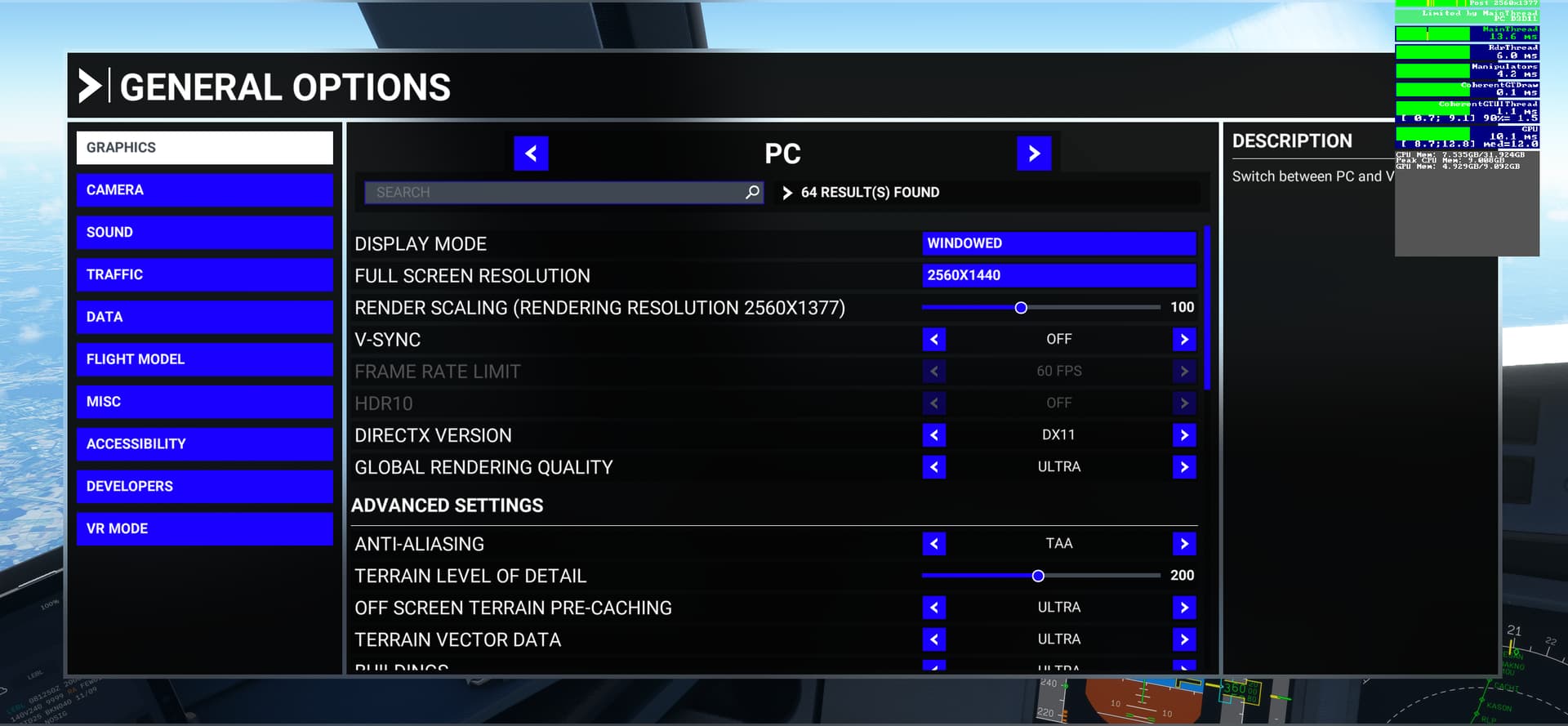 I switched to %150 Render Scale, which indeed increased the FPS 1-2 maybe. Still can’t go over 30 though. I’m just gonna save and exit and relaunch and see if it makes any difference and if it doesn’t change anything I’m gonna start at the same location after I close and reopen the sim and write the answer here.