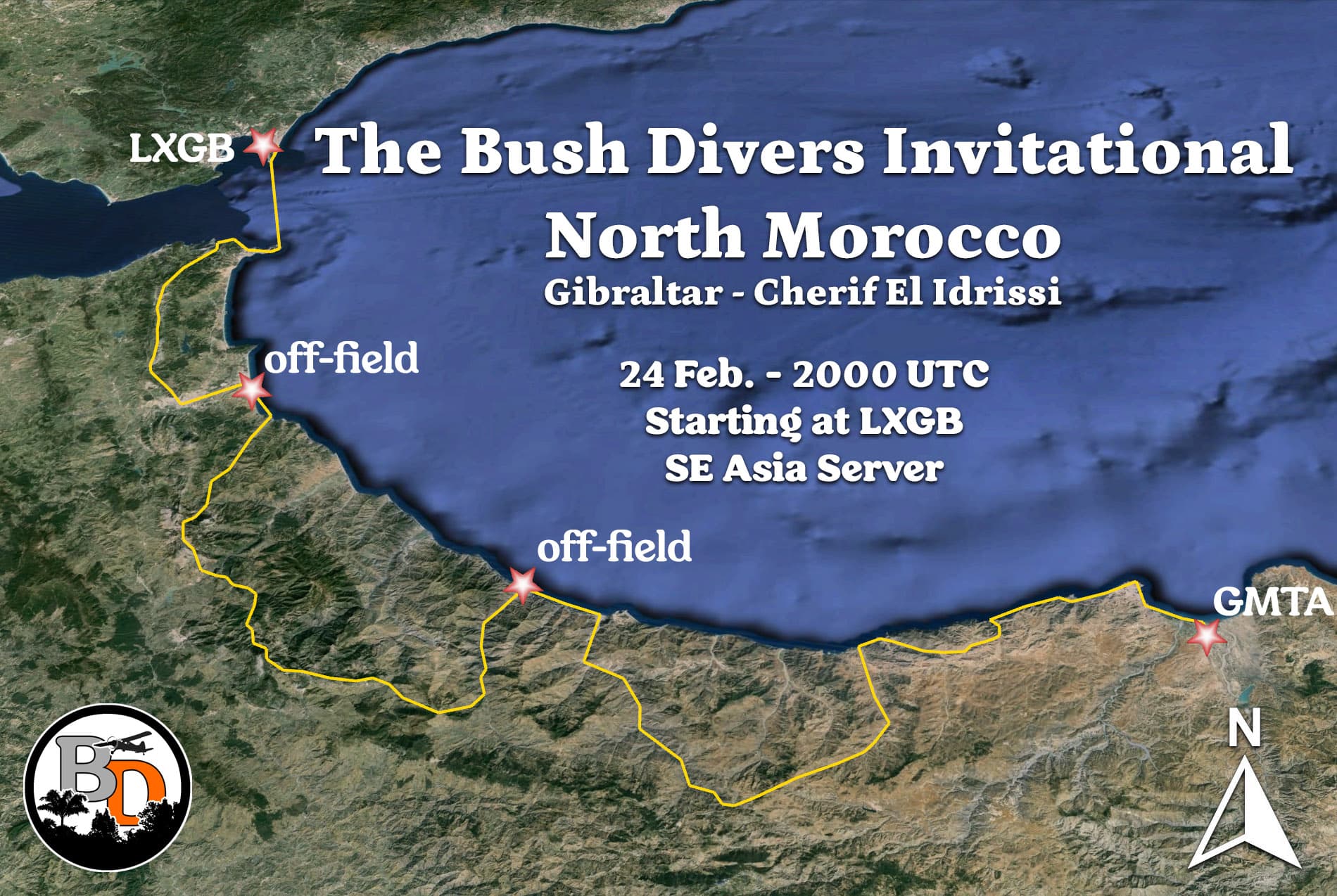 To join: just turn up at the starting airport in a suitable aircraft, MSFS multiplayer on, name tags on, and join the Discord “The Bush Divers Invitational” voice channel. You can load the flight plan if you like, or just follow the group.