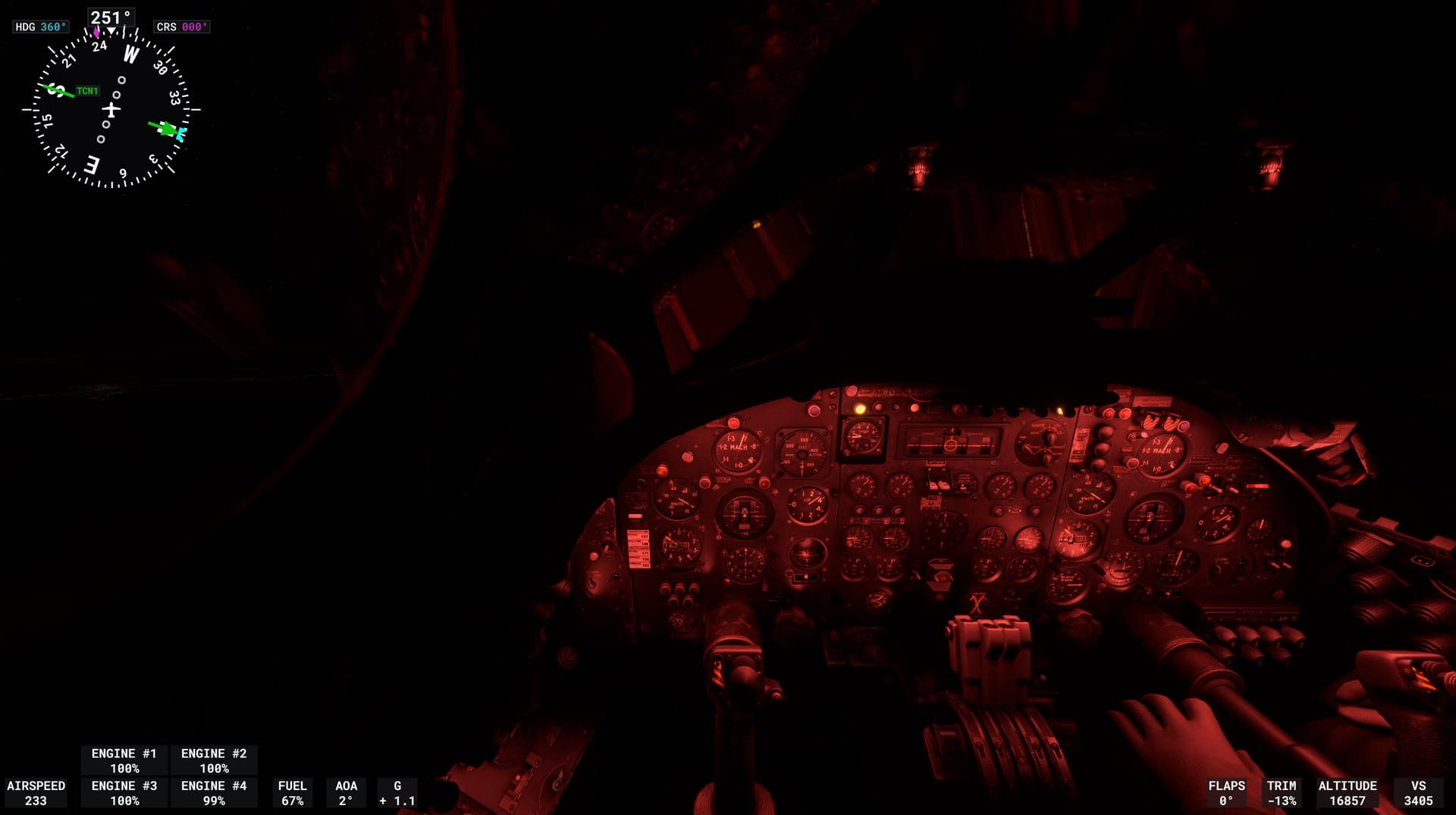 When in the cockpit view how do you turn off the overlayed compass, AOA, thrust etc etc, very distracting.