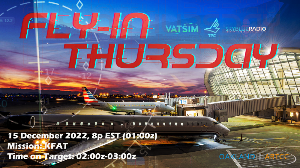 TPC Flight Ops team, in coordination with Oakland ARTCC & VATUSA, invites you to FLY-IN THURSDAY group flight, brought to you by SKY BLUE RADIO.