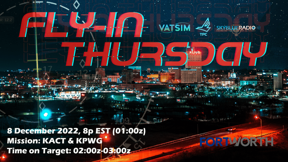 TPC Flight Ops team, in coordination with Fort Worth ARTCC & VATUSA, invites you to FLY-IN THURSDAY group flight, brought to you by SKY BLUE RADIO.