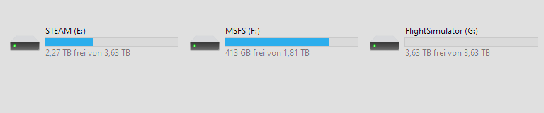 My SSD 2TB is dedicated to MSFS 2020 only, and is close to be full, only 413 GB left, but I do not care much since it comes to an end of the journey once MSFS 2024 released.