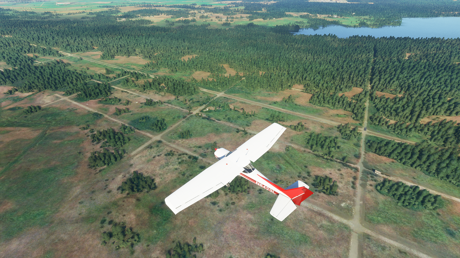 I picked a random airport in northern California (KCEC) and started flying north along the coast in the 152. Not too far north, I find a town, except it’s just empty streets, no buildings. I think surely this is buggy AI at work or outdated satellite imagery. But after looking a round a little bit, I started having doubts. So I look it up on (on Google maps) and they show empty streets too…but they have a name: “Pacific Shores.” So I stumble on to the Wikipedia page for Pacific Shores, then a few other news articles about and I learn a really interesting story that Pacific Shores was to be a town, once upon a time…but the town was never built.
