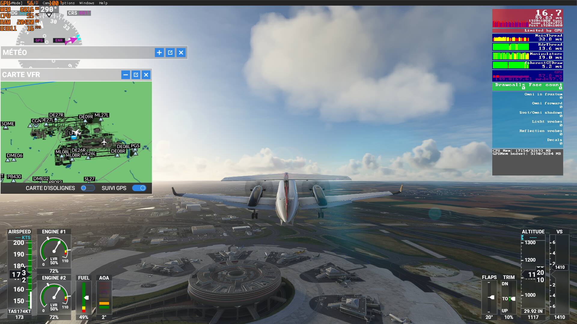 LFPG with beechcraft : severe drop of fps from 30 to 16 with gpu 100%