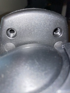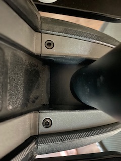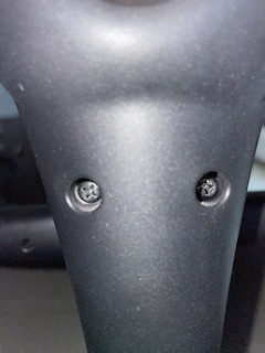 Then on the pedestal there are four screws that have rubber covers over their heads. Two of these are at the top facing you. You can see them when you rotate the yoke left and right. Two more are on the face of the pedestal also facing you. The final two on are midway up the back of the pedestal on the backside. (The rubber covers and screws have been removed in these photos)
