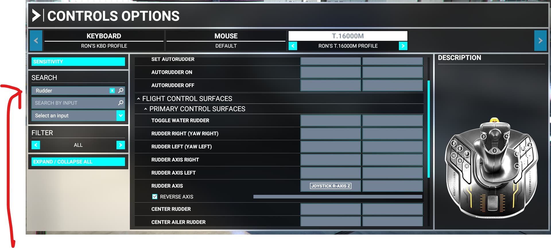 Joystick R-Axis Z -> Rudder Axis (Reverse)