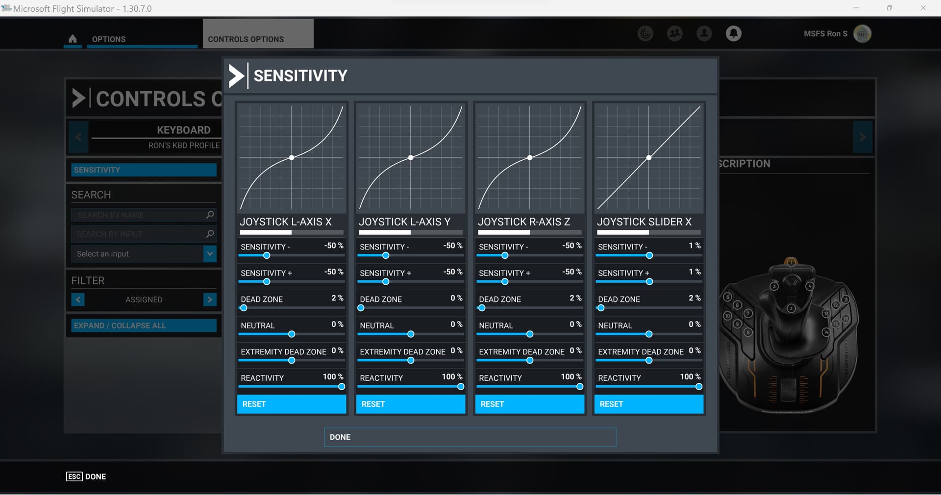 Joystick L-Axis X -> Ailerons Axis (Reverse)