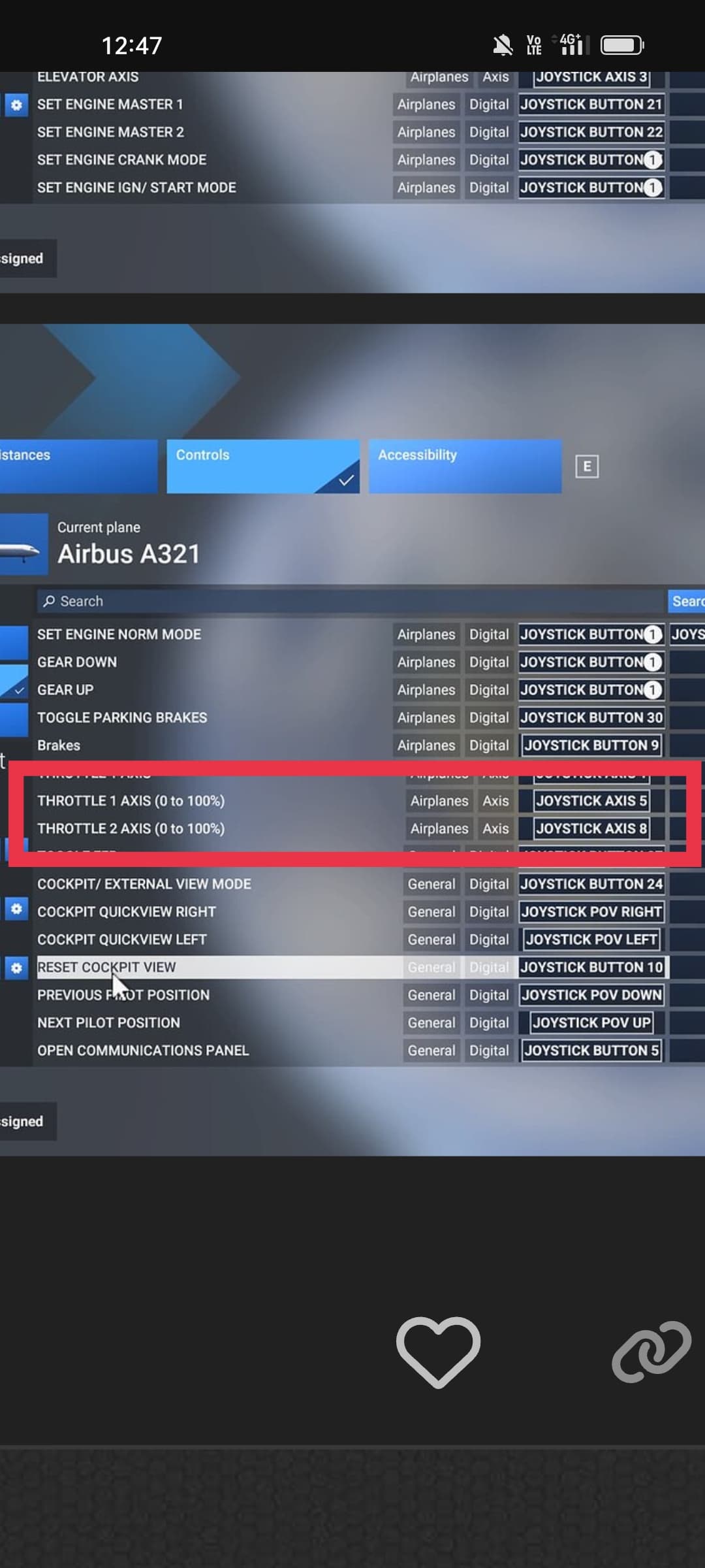 What do you need a photo off? I have put my bindings up a few posts back and it is then set from inside the aircraft on the tablet. Reverse on axis must be set and then calibrate your throttles by moving to each position and then click.