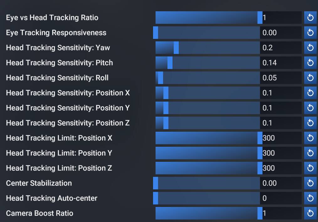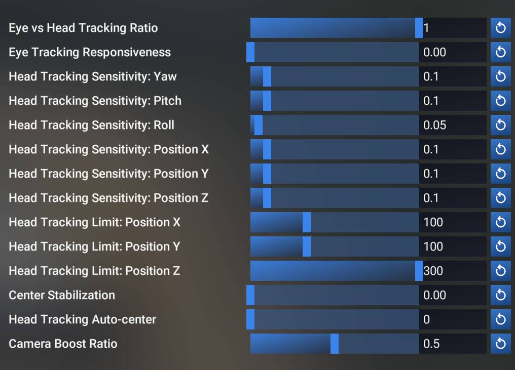 @SeedyL3205 has posted his current in-sim Settings for the Tobii in SU5, which one user has stated has given a big improvement to their experience now. Have any others in this thread had an opportunity to replicate these settings to see if they help resolve the issue for you? Tobii Headtracking Responsiveness is "Lazy" - #18