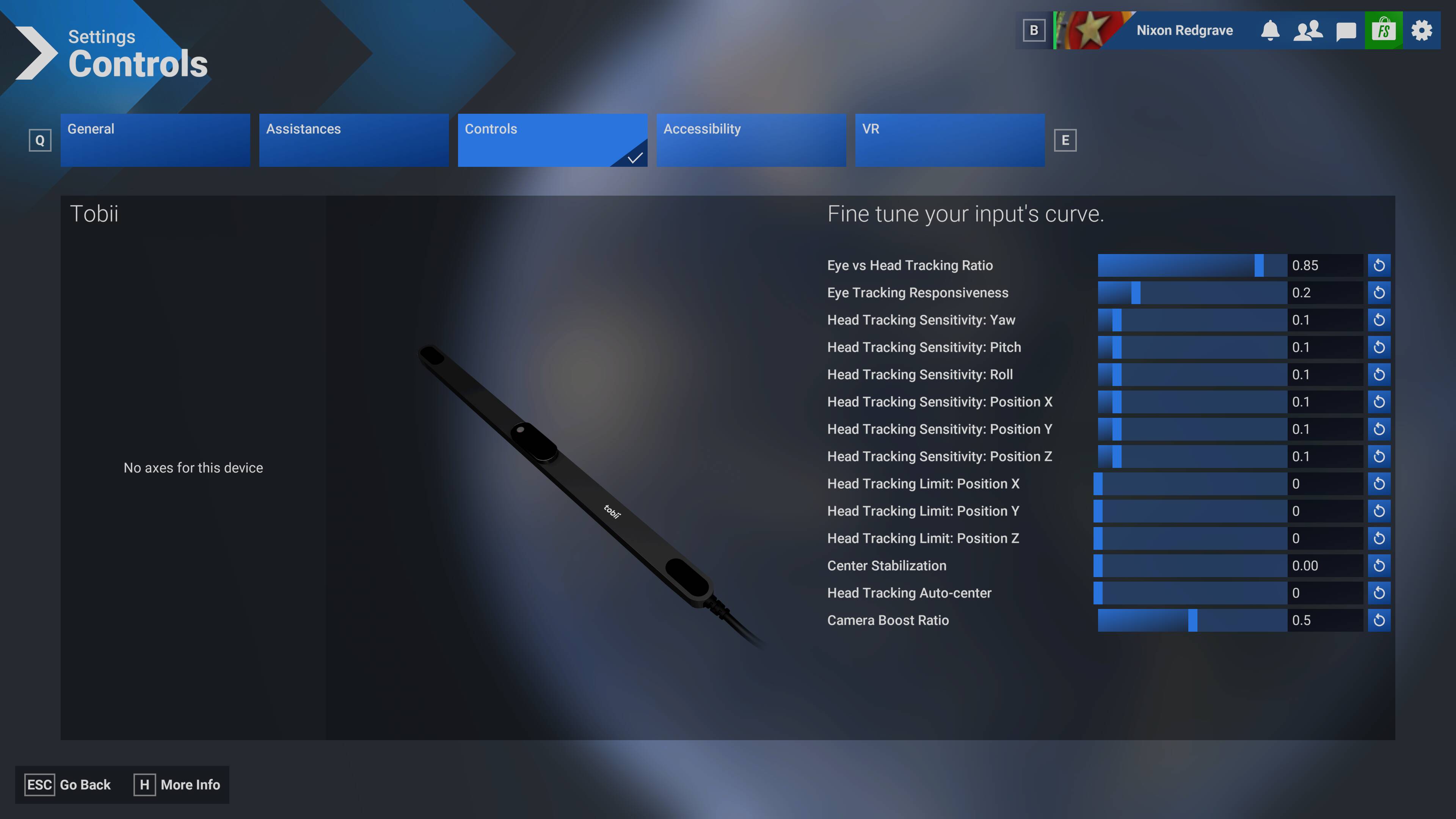 I’d also like to know what is going on with the Controls interface in that my Tobii settings are displaying something other than what I had initially set them to, however the behavior of the Tobii in-sim feels no differently to how I originally set them, so are they actually different or just displaying that way? I’d like to know what my actual settings are here, and if some aspect of those settings is contributing to this delay.