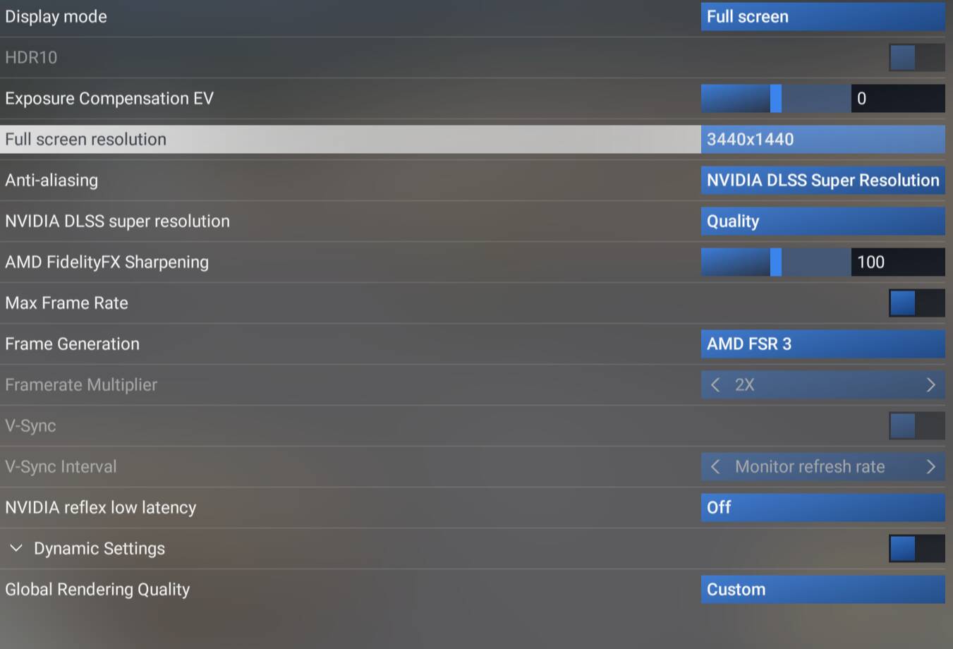 When sitting cold and dark at a small airport, the above will net me a solid 50fps (100fps with FSR 3) on a 100Hz monitor, 3080ti and a 7800x3d.