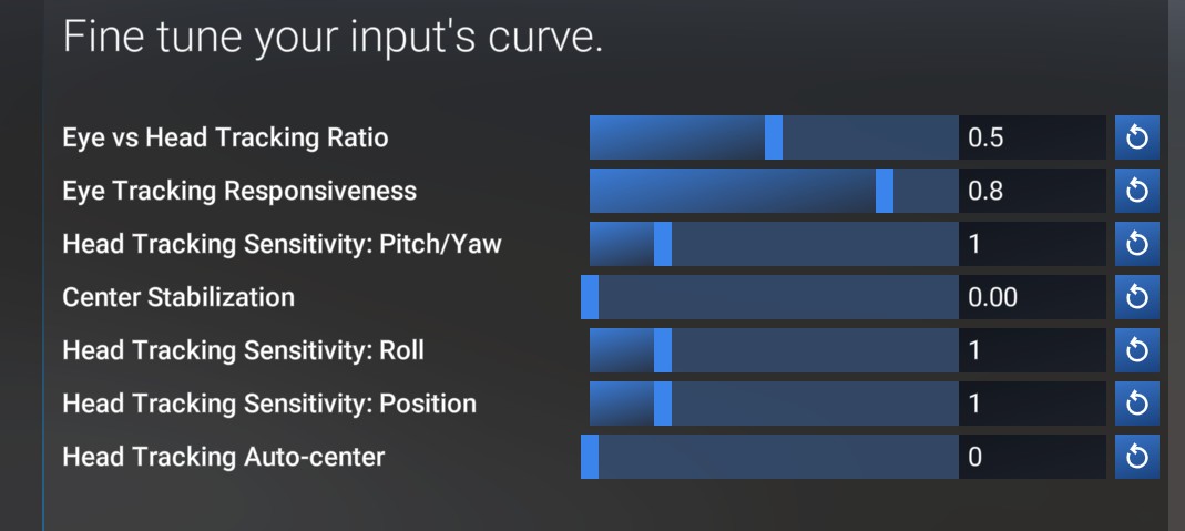 I’ve managed to get the eyetracking or head tracking disabled via that slider, but I am completely unable to get any tilt(pitch) and the pan(yaw) sensitivity seems to do nothing.