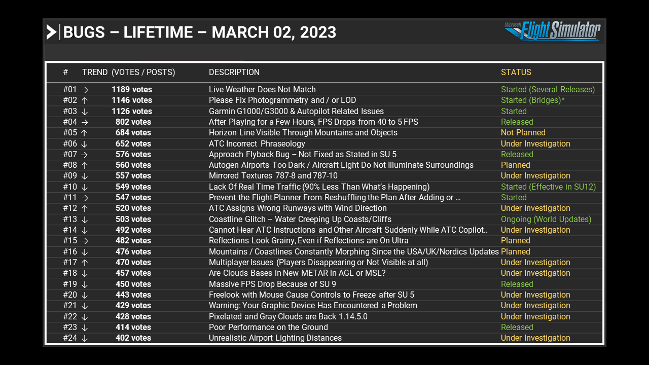 But does ‘bug-logged’ mean it has been accepted by the Asobo team as something to be fixed? AFAIK at no point has anyone from MS / Asobo ever acknowledged that the current behaviour is not by design or not what they want. On the contrary, I think it absolutely is by design. It interrupts you so you are under no illusions that you’re still online. As a user-centred design it sucks, but someone had to specify it to work that way originally.