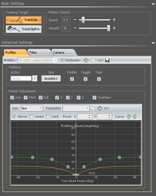 Is not the app but how game reproduces those inputs. As I wrote in the TrackIR app the camera movements are reproduced smoothly. This is what I have in the settings and I have been using TrackIR for years without issues.