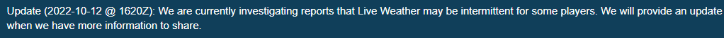 Thereâs a big blue message at the top of this page that says they are aware live weather is intermittent for some people. Check it out.