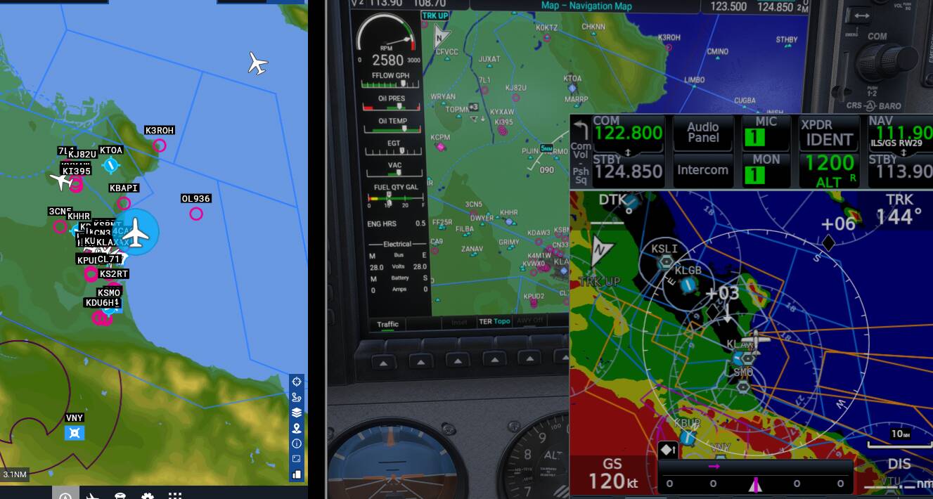 BUT, in my G1000 and GTN750 i have no traffic TCAS icons showing. i see all my multiplayer friends just fine. On the EFB map, I only see one of them (there’s 8 multiplayer friends around me though)