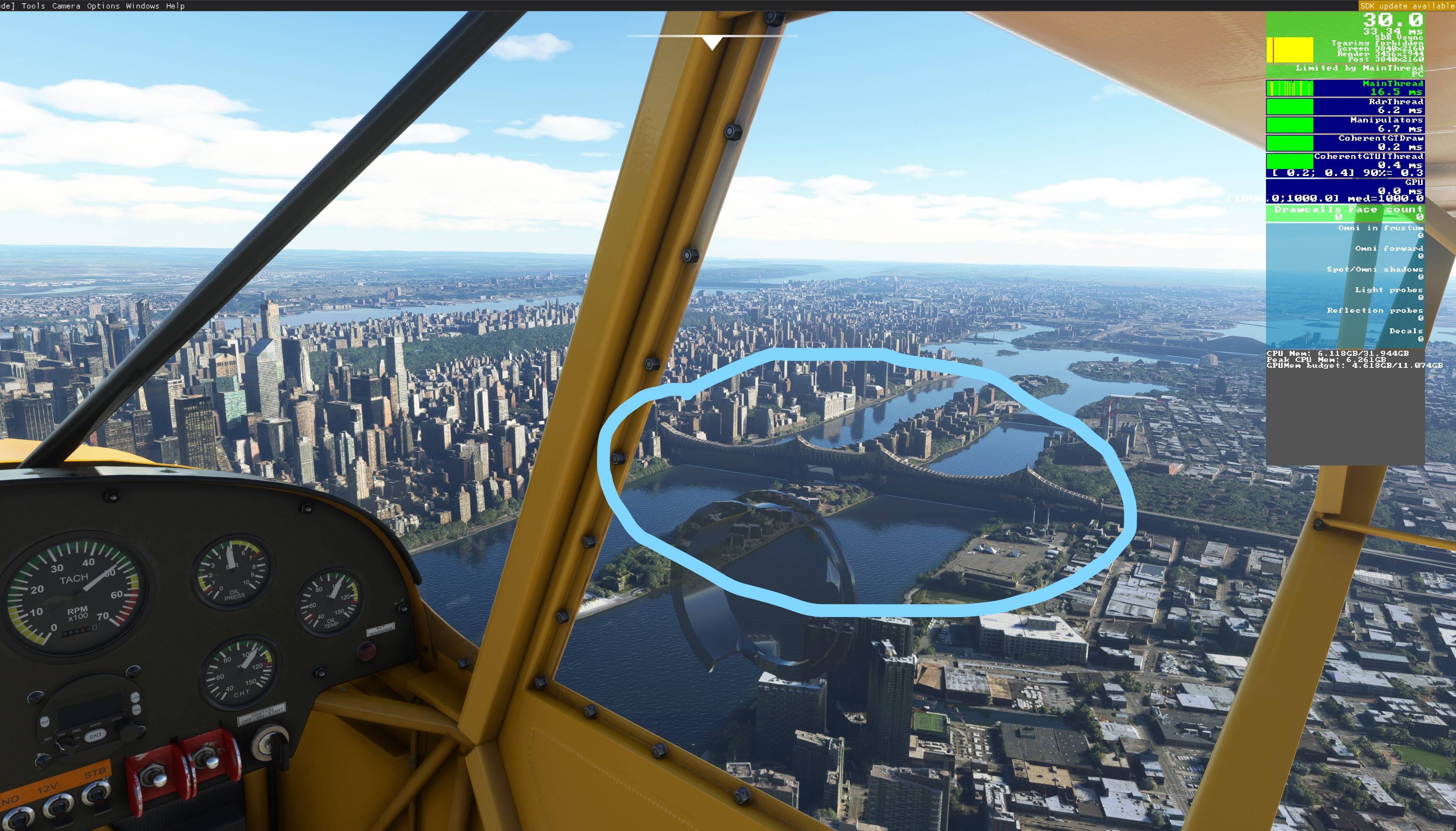 I have just done a VFR flight over New York…Trees, bloody Trees everywhere…I love them, but not when they are growing in the middle of city streets and through houses.