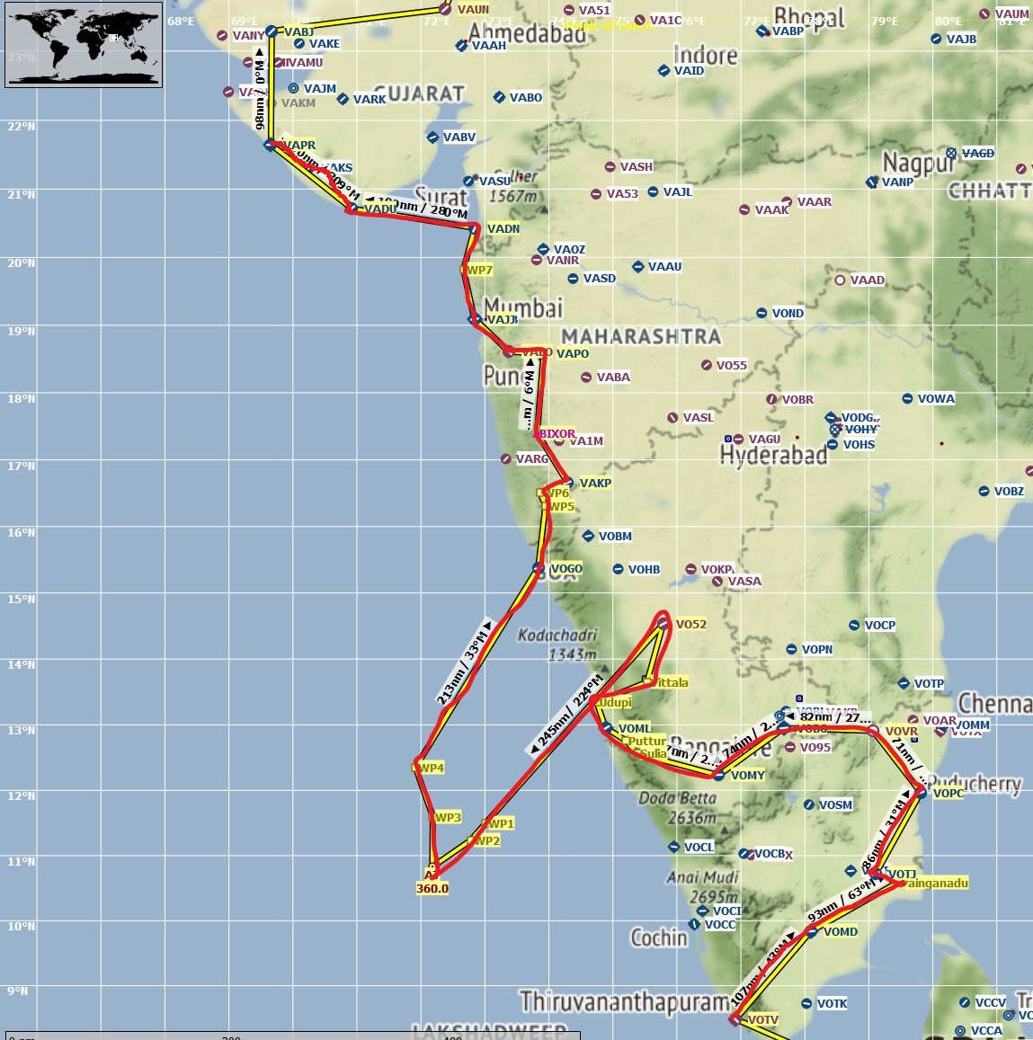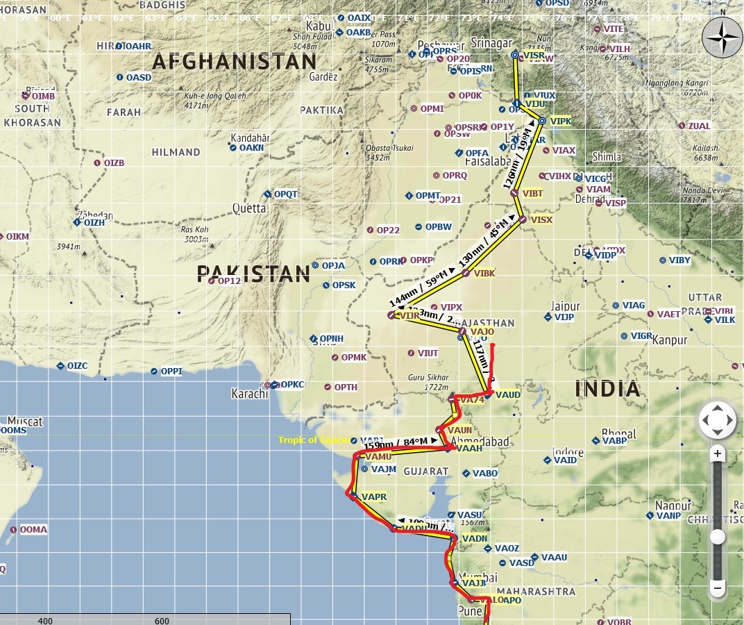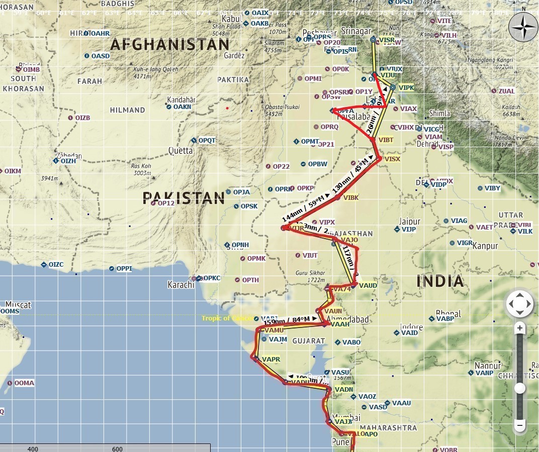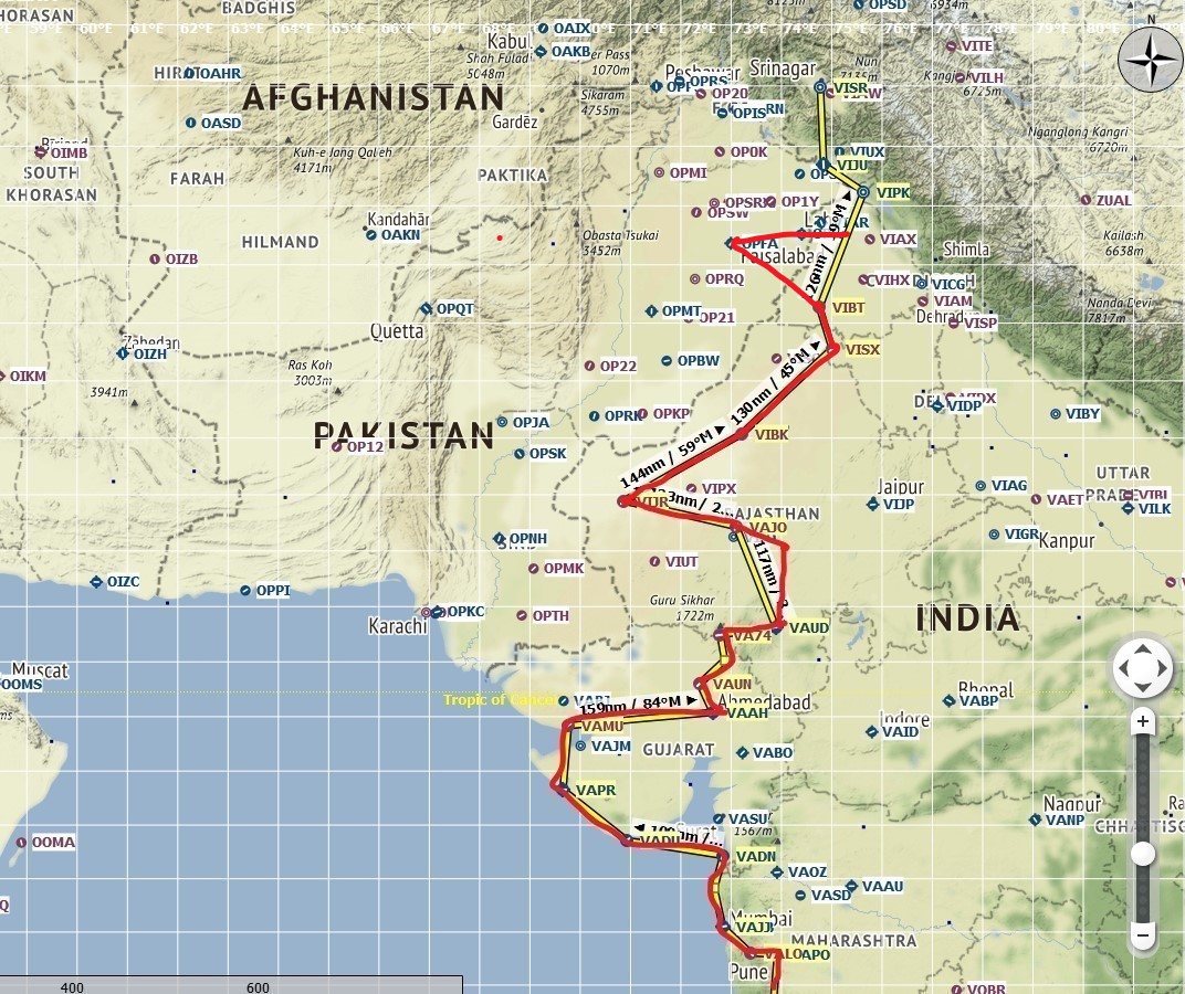 Leg #23: Mt. Abu to Udaipur, Rajasthan . Distance 61 nm, flight time 48 min. Conditions clear skies but windy. Cruising altitude 7,000 feet.